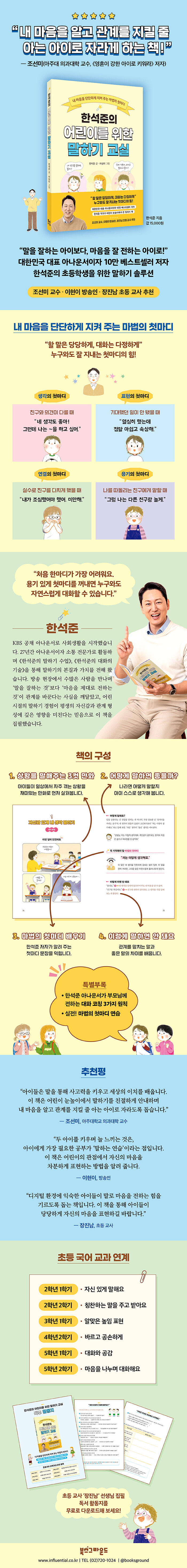 ¾Æ³ª¿î¼ ÇѼ®ÁØÀº 27³â°£ ¹æ¼Û ÇöÀå¿¡¼ ¼ö¸¹Àº »ç¶÷À» ¸¸³ª¸ç ¡®¸»Àº ŵµ¿Í ¸¶À½¿¡¼ ½ÃÀ۵ȴ١¯´Â »ç½ÇÀ» ±ú´Þ¾Ò´Ù. ÀÚ½ÅÀÇ ¸¶À½À» Àß µé¿©´Ùº¸°í À̸¦ Áø½ÉÀ¸·Î ÀüÇÏ·Á´Â ŵµ¸¦ °®Ãá´Ù¸é ¾î¶² ´ëȵµ ¾î·ÆÁö ¾Ê°Ô À̾ ¼ö ÀÖ´Ù´Â °ÍÀÌ´Ù. ¡¶ÇѼ®ÁØÀÇ ¸»Çϱ⠼ö¾÷¡·, ¡¶ÇѼ®ÁØÀÇ ´ëÈÀÇ ±â¼ú¡· µîÀ» ÅëÇØ ¼ºÀÎÀ» À§ÇÑ ¸»Çϱ⠹æ¹ýÀ» ÀüÇØ ¿Â ±×´Â À̹ø Ã¥¿¡¼ ¾î¸° ½ÃÀý ¸»Çϱ⠰æÇèÀÌ Æò»ýÀÇ Àڽۨ°ú °ü°è Çü¼º¿¡ Å« ¿µÇâÀ» ¹ÌÄ£´Ù´Â Á¡¿¡ ÁÖ¸ñÇß´Ù. ¸»Çϱ⿡ ¼Å÷ ¾î¸°À̵éÀÌ Àڱ⠻ý°¢°ú °¨Á¤À» ¿ë±â ÀÖ°Ô Ç¥ÇöÇÒ ¼ö ÀÖµµ·Ï µ½°í ½Í´Ù´Â ¸¶À½¿¡¼ ¾î¸°À̸¦ À§ÇÑ Ã¥À» ÁýÇÊÇß´Ù.