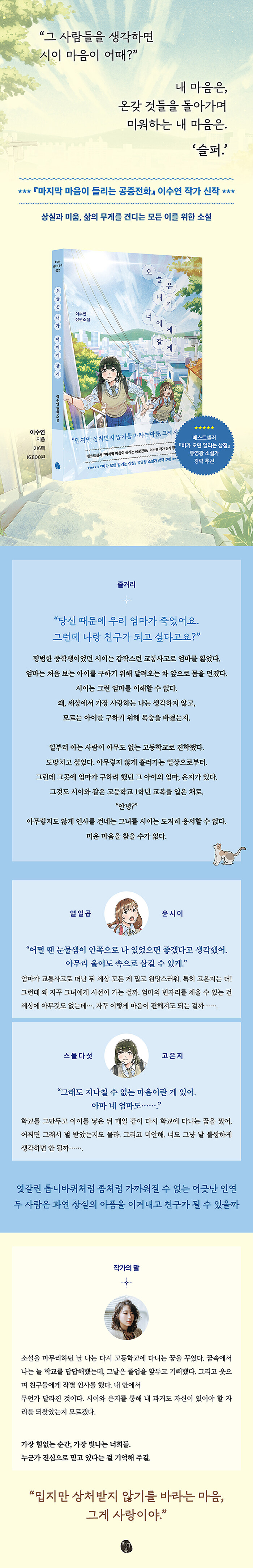 º£½ºÆ®¼¿·¯ ¡º¸¶Áö¸· ¸¶À½ÀÌ µé¸®´Â °øÁßÀüÈ¡»·Î ¼ö¸¹Àº µ¶ÀÚÀÇ ´«¹°»ùÀ» ÀÚ±ØÇß´ø À̼ö¿¬ ÀÛ°¡°¡ û¼Ò³âÀ» À§ÇÑ Ã¹ ÀåÆí¼Ò¼³ ¡º¿À´ÃÀº ³»°¡ ³Ê¿¡°Ô °¥°Ô¡»¸¦ Ãâ°£Çß´Ù.