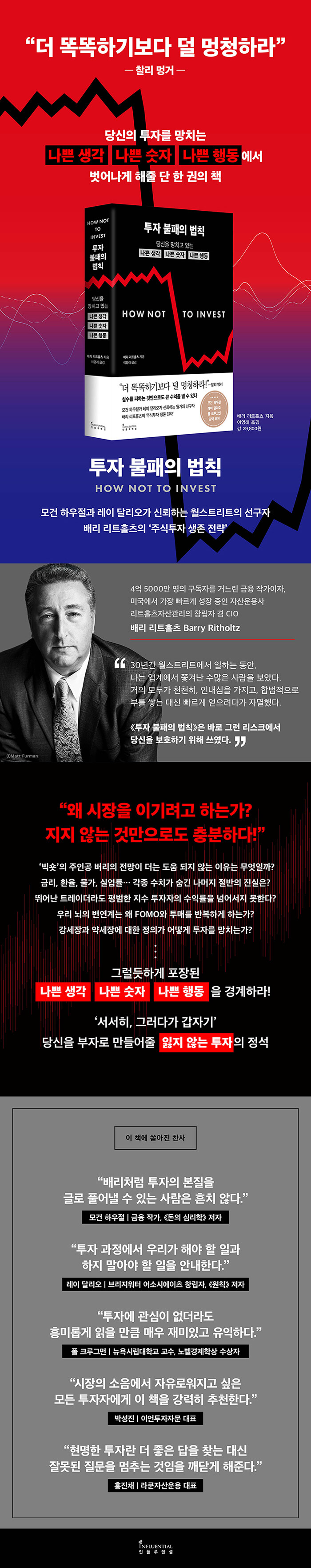 ¡¶ÅõÀÚ ºÒÆÐÀÇ ¹ýÄ¢¡·À» ¾´ ¹è¸® ¸®Æ®È¦Ã÷´Â Àü¼³ÀûÀÎ ÅõÀÚÀÚ Âû¸® ¸Û°ÅÀÇ ¸»À» ºô·Á ¡°´õ ¶È¶ÈÇØÁö·Á ¾Ö¾²±âº¸´Ù´Â ´ú ¸ÛÃ»ÇØÁö·Á ³ë·Â¡±ÇØ¾ß ÇÑ´Ù°í Á¶¾ðÇÑ´Ù. ¡°°£´ÜÈ÷ ¸»ÇØ ½Ç¼ö¸¦ ÁÙÀÌ¸é µ·ÀÌ ½×ÀδÙ.¡± ÇÏÁö¸¸ ÀÌó·³ °£´ÜÇÑ ÀÌÄ¡¿¡µµ ºÒ±¸ÇÏ°í ¿©ÀüÈ÷ ¸¹Àº ÅõÀÚÀÚ°¡ ½Ç¼ö¸¦ ÀÚÃÊÇϰí, ¶Ç ¹Ýº¹ÇÑ´Ù. ±×µéÀ» À¯ÀÎÇÏ´Â ÇÔÁ¤ÀÌ À̸§³ Àü¹®°¡ÀÇ ½ÃÀå Àü¸Á, Ãֽе¥ÀÌÅÍ¿Í ¼öÄ¡, ¼Ò¼ö¿¡°Ô¸¸ Çã¶ôµÈ ³»ºÎÁ¤º¸, ³õÄ¡Áö ¸»¾Æ¾ß ÇÒ ¼Óº¸ µî ±×·²µíÇÑ Æ÷ÀåÀ» µÎ¸£°í Àֱ⠶§¹®ÀÌ´Ù. ÀÌ Ã¥Àº ±× µÚ¿¡ ¼ûÀº ¡®³ª»Û »ý°¢¡¯, ¡®³ª»Û ¼ýÀÚ¡¯, ¡®³ª»Û Çൿ¡¯À» ³¹³¹ÀÌ µå·¯³»°í, À̸¦ ÇÇÇÏ°Ô ÇØÁÙ ¡®ÁÁÀº ¿øÄ¢¡¯À» Á¦½ÃÇÔÀ¸·Î½á ´õ ³ªÀº ÅõÀÚ °áÁ¤À» ²ø¾î³½´Ù.