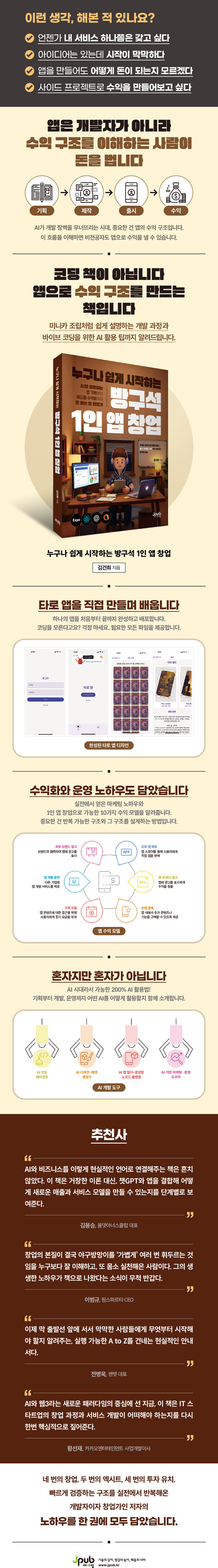 ¡®¾Û â¾÷¡¯À̶ó°í ÇÏ¸é ¿©ÀüÈ÷ °ÅâÇÏ°Ô ´À²¸Áø´Ù. Àü¹® °³¹ßÀÚ¸¸ ÇÒ ¼ö ÀÖ´Â ÀÏ °°°í, »ç¹«½Ç°ú ÆÀ, Å« ÀÚº»ÀÌ ÀÖ¾î¾ß °¡´ÉÇÑ ¿µ¿ªÃ³·³ º¸ÀδÙ. ÇÏÁö¸¸ ÀÌ Ã¥Àº ±× Åë³äÀ» µÚÁý´Â´Ù. ÄÄÇ»ÅÍ ÇÑ ´ë¿Í ¾ÆÀ̵ð¾î, ±×¸®°í AI µµ±¸¸¸ ÀÖ´Ù¸é ´©±¸³ª ¡®¹æ±¸¼® 1ÀÎ ¾Û â¾÷¡¯À» ½ÃÀÛÇÒ ¼ö ÀÖ´Ù°í ¸»ÇÑ´Ù.