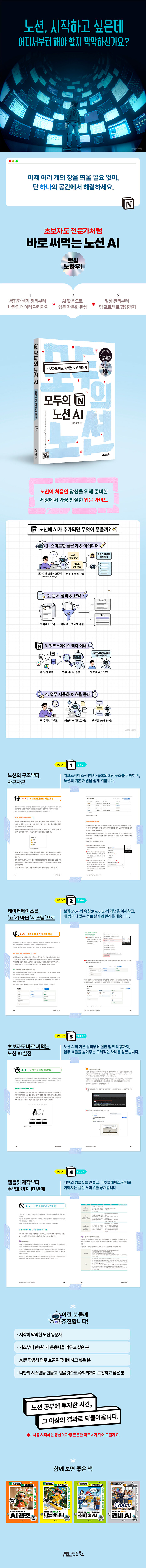 ÀÌ Ã¥Àº ³ë¼ÇÀ» óÀ½ Á¢ÇÏ´Â ÀÔ¹®ÀÚ¸¦ À§ÇÑ °¡Àå Ä£ÀýÇÑ ¾È³»¼ÀÔ´Ï´Ù. ¸Þ¸ð¿Í ÀÏÁ¤, µ¥ÀÌÅͺ£À̽º±îÁö ÇÑ ¹ø¿¡ °ü¸®ÇÒ ¼ö ÀÖ´Â ¿ÃÀοø µµ±¸ ³ë¼ÇÀ» ½±°í Àç¹ÌÀÖ°Ô Ç®¾î³Â½À´Ï´Ù. ±âº» ±¸Á¶ºÎÅÍ µ¥ÀÌÅͺ£À̽º Ȱ¿ë, AI ±â´É±îÁö ´Ü°èº°·Î µû¶ó°¡´Ù º¸¸é ÀÚ¿¬½º·´°Ô ±× ±â´ÉÀ» ÀÍÈú ¼ö ÀÖ½À´Ï´Ù. ¶ÇÇÑ ½ÇÁ¦ ¾÷¹«¿Í »ýȰ ¼Ó¿¡¼ ¹Ù·Î Àû¿ë °¡´ÉÇÑ ¿¹½Ã¿Í ½Ã³ª¸®¿À¸¦ dzºÎÇÏ°Ô ´ã¾ÒÀ¸¸ç, ³ë¼Ç AIÀÇ ÅØ½ºÆ® »ý¼ººÎÅÍ ¹®¼ ÀÚµ¿È, ¸ÂÃãÇü º¸°í¼ Ȱ¿ë¹ý±îÁö ½ÇÀü Áß½ÉÀ¸·Î ¼³¸íÇÕ´Ï´Ù.