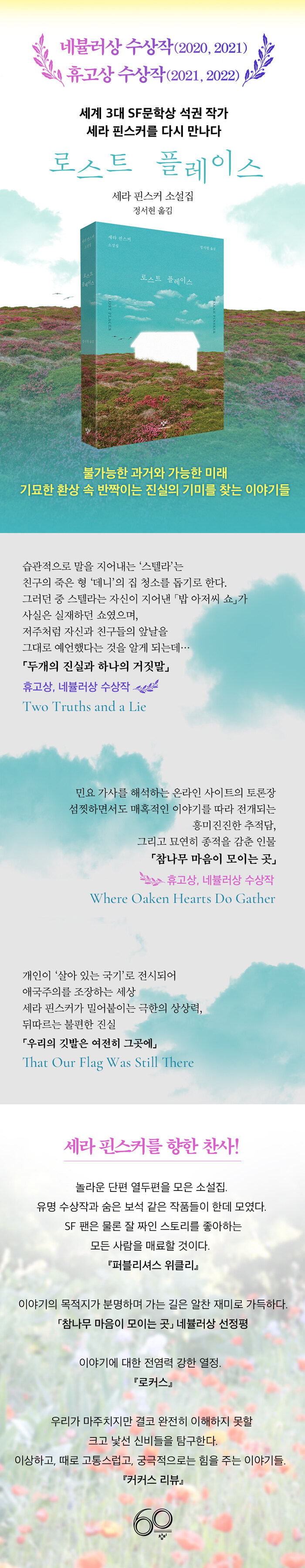 Çʸ³ K.µñ»ó, ³×ºæ·¯»ó, ÈÞ°í»ó, ·ÎÄ¿½º»ó µî ÃÖ°íÀÇ SF¹®ÇлóÀ» ÈÛ¾µ¸ç ¼¼°èÀûÀÎ ½ºÅ¸ ÀÛ°¡ÀÇ ¹Ý¿¿¡ ¿À¸¥ ¼¼¶ó ÇɽºÄ¿ÀÇ ¡º·Î½ºÆ® Ç÷¹À̽º¡»(Á¤¼Çö ¿Å±è)°¡ Ãâ°£µÇ¾ú´Ù. 2025³â Ãâ°£µÈ ¡º¾ðÁ¨°¡ ¸ðµç °ÍÀº ¹Ù´Ù·Î ¶³¾îÁø´Ù¡» ÀÌÈÄ ±¹³»¿¡ ¼±º¸ÀÌ´Â ÀúÀÚÀÇ µÎ¹øÂ° ¼Ò¼³ÁýÀ¸·Î, º»°ÝÀûÀ¸·Î ¹«¸£ÀÍÀº »ó»ó·ÂÀÌ SF, ¼³È, ÆÇŸÁö¸¦ Á¾È¾¹«ÁøÇÏ¸ç ¿Õ¼ºÇÏ°Ô »¸¾î³ª°¡´Â »ý»ýÇÑ È°±â¸¦ ´À³¥ ¼ö ÀÖ´Ù. ÈÞ°í»ó°ú ³×ºæ·¯»óÀ» ¿¬´Þ¾Æ ¼ö»óÇÑ ¡¸µÎ°³ÀÇ Áø½Ç°ú ÇϳªÀÇ °ÅÁþ¸»¡¹ ¡¸Âü³ª¹« ¸¶À½ÀÌ ¸ðÀÌ´Â °÷¡¹À» ºñ·ÔÇØ ÃÑ 12ÆíÀÌ Çѵ¥ ¸ð¿© ÀÖ´Ù. ½Ã°ø°£°ú Çü½ÄÀ» ³Ñ³ªµé¸ç Çö½Ç°ú ¼»ç¸¦ ÀÌÀ½¸Å ¾øÀÌ Àý¹¦ÇÏ°Ô ¿¬°áÇØ³½ ¡°À¯¸í ¼ö»óÀÛ°ú ¼ûÀº º¸¼® °°Àº ÀÛǰµé¡±Àº ºñ´Ü SF¹®ÇÐ µ¶ÀÚ»Ó ¾Æ´Ï¶ó À̾߱âÀÇ ÈûÀ» ¾Æ´Â ¸ðµç µ¶ÀÚ¸¦ ¸Å·áÇϱ⿡ ¸ðÀÚ¶÷ÀÌ ¾ø´Ù. ¡°ÀÌ»óÇϰí, ¶§·Î °íÅ뽺·´°í, ±Ã±ØÀûÀ¸·Î ÈûÀ» ÁÖ´Â À̾߱⡱(¡ºÄ¿Ä¿½º ¸®ºä¡»)µé·Î °¡µæÇÑ, ¼¼¶ó ÇɽºÄ¿¸¸ÀÇ ±â¹¦ÇÏ°í ¾Æ¸§´Ù¿î °¡´É¼ºÀÇ ¼¼°è°¡ ´Ù½Ã±Ý ȯ»óÀûÀÎ Æ÷¹®À» ¿¾ú´Ù. Ä«À̽ºÆ® µðÁöÅÐÀι®»çȸ°úÇкΠÁ¤¼Çö ±³¼ö°¡ ÀüÀÛ¿¡ ÀÌ¾î ¶Ç Çѹø ¼¼¶ó ÇɽºÄ¿ÀÇ ´Ùä·Î¿î ¼¼°è¸¦ Çѱ¹ µ¶Àڵ鿡°Ô ¼Ò°³ÇÑ´Ù.