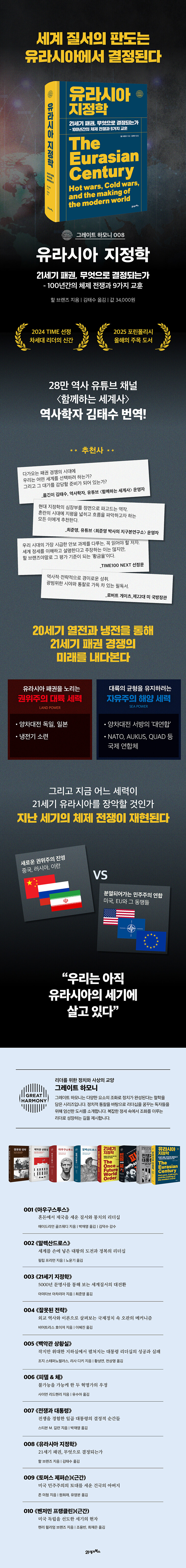 °ú°ÅÀÇ ¿ª»ç°¡ Áõ¸íÇϵí À¯¶ó½Ã¾ÆÀÇ ÁöÁ¤ÇÐÀû ´ÜÃþ¼±ÀÌ Èçµé¸± ¶§¸¶´Ù ¼¼°èÀÇ ¿î¸íÀÌ ¹Ù²î¾î ¿Ô´Ù. ÀÌ Ã¥Àº ½ÃÀÇÀûÀýÇϰԵµ °´ë±¹ÀÇ °¢ÃàÀåÀ¸·Î º¯Çعö¸° ¿À´Ã³¯ÀÇ ±¹Á¦ Á¤¼¼¸¦ ²ç¶Õ¾î º¸´Â °¡Àå ÈǸ¢ÇÑ ÅëÂû°ú Áö½ÄÀ» Á¦°øÇÑ´Ù. µ¶ÀÚµéÀº ÀÌ Ã¥À» ÅëÇØ ¿ª»ç ¼Ó¿¡¼ ¹Ýº¹µÇ´Â ÁöÁ¤ÇÐÀû ¿¼è·Î¼ÀÇ À¯¶ó½Ã¾Æ¸¦ ÀÌÇØÇϰí, ¿ì¸® ¼¼´ë¿¡ °´ë±¹µéÀÌ ¾î¶² Çຸ¸¦ ÃëÇØ³ª°¥Áö, °¢ÀÚÀÇ ÀÚ¸®¿¡¼ ¾î¶² ´ëºñ¸¦ Çϰí ÀÖ¾î¾ß ÇÒÁö ¿¹°¨ÇÒ ±âȸ¸¦ ¾òÀ» ¼ö ÀÖÀ» °ÍÀÌ´Ù.