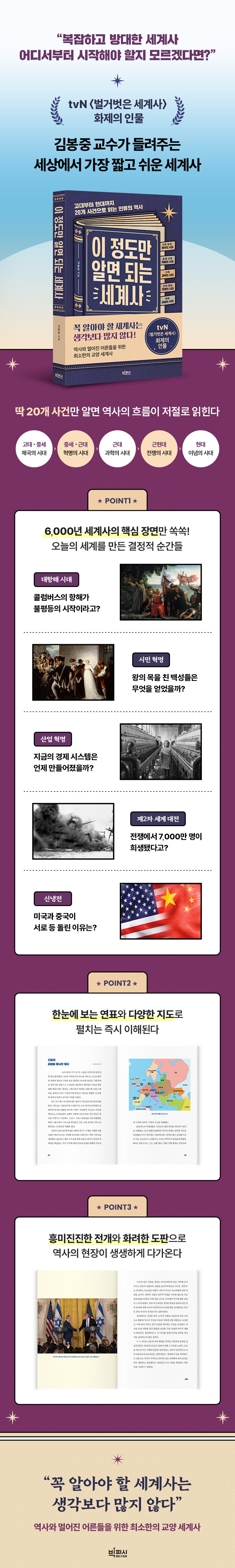 tvN ¡´¹ú°Å¹þÀº ¼¼°è»ç¡µ¸¦ ÅëÇØ ¡°½Ã°£ °¡´Â ÁÙ ¸ð¸£°í º¸°Ô µÇ´Â ¸í°ÀÇ¡±¶ó´Â È£ÆòÀ» ¹Þ¾Æ¿Â ¿ª»ç ½ºÅ丮ÅÚ·¯ ±èºÀÁß ±³¼ö´Â 4´ë ¹®¸í¿¡¼ ½ÃÀÛÇÏ´Â Áö·çÇÑ ¼¼°è»ç ´ë½Å, ¼öõ ³âÀÇ ¿ª»ç Áß ÇöÀ縦 »ì¾Æ°¡´Â ¿ì¸®°¡ ¹Ýµå½Ã ¾Ë¾Æ¾ß ÇÒ 20°³ÀÇ °áÁ¤Àû Àå¸é¸¸ ¾ö¼±Çß´Ù. ³ª¾Æ°¡ ÀÌ »ç°ÇµéÀ» ¼¼»óÀ» ¿òÁ÷ÀÎ 5°³ÀÇ ÈûÀ¸·Î ³ª´©¾î ¹Ù¶óº¸¸ç, Çѹø ÀÐÀ¸¸é ½±°Ô ÀØÈ÷Áö ¾Ê´Â ±¸Á¶·Î Ã¥À» ¿Ï¼ºÇß´Ù. °í´ë Á¦±¹ºÎÅÍ ¹Ì¡¤Áß ½Å³ÃÀü±îÁö, ÀηùÀÇ ¿ª»ç¸¦ Â÷ºÐÈ÷ ¤¾îÁÖ´Â ÀÌ Ã¥À» µû¶ó°¡´Ù º¸¸é º¹ÀâÇϰԸ¸ ´À²¸Á³´ø ¼¼°è»ç°¡ ´Ü¹ø¿¡ Á¤¸®µÇ¸ç, ¸ÅÀÏ ½ºÃÄ Áö³ª°¡´ø ´º½º ¼Ó ¼¼°è°¡ ÀúÀý·Î ÀÐÈ÷±â ½ÃÀÛÇÒ °ÍÀÌ´Ù.