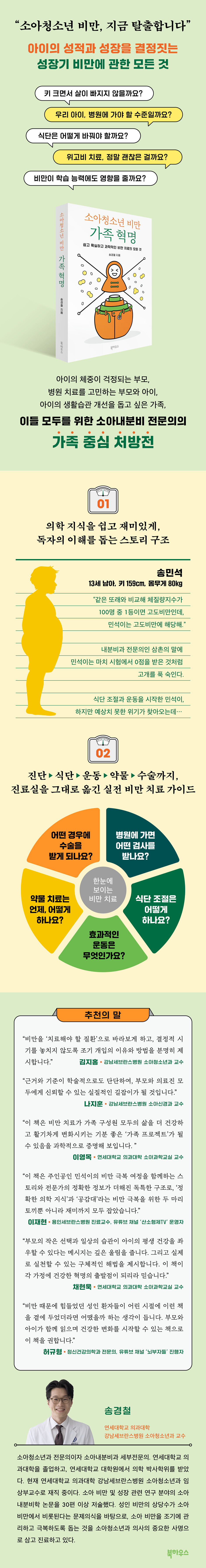 ÀÌ Ã¥ÀÇ °¡Àå Å« Ư¡Àº ¼Ò¾Æ ºñ¸¸À¸·Î °í»ýÇÏ´Â ¹Î¼®ÀÌ¿Í ±× °¡Á·ÀÇ À̾߱â·Î ½ÃÀ۵ȴٴ Á¡ÀÌ´Ù. ÁßÇлý ¹Î¼®ÀÌ¿Í ±×ÀÇ ºÎ¸ð, µ¿»ýÀº ¡®»ïÃÌ¡¯ÀÎ ¼Ò¾Æ³»ºÐºñ°ú Àü¹®ÀÇ¿Í ÇÔ²², ºñ¸¸ ȯÀÚÀÇ ¸ö¿¡¼ ¾î¶² º¯È°¡ ÀϾ´ÂÁö¸¦ Çϳª¾¿ ÀÌÇØÇØ°£´Ù. üÁßÀÌ ´Ã¾î³ ÀÌÀ¯ºÎÅÍ ºñ¸¸ÀÇ ±âÁذú °Ë»ç, ½ÄŹ¿¡¼ ¹Ù²ã¾ß ÇÒ ½À°ü, ¿îµ¿ÀÇ ¿ªÇÒ, ±×¸®°í ¸¶Áö¸· ¼±ÅÃÁöÀÎ ¾à¹°(À§°íºñ µî)°ú ºñ¸¸ ¼ö¼ú±îÁö, ±× ¸ðµç °úÁ¤À» ´ãÀº À̾߱Ⱑ ½ÇÁ¦ Áø·á È帧À» µû¶ó ÀÚ¿¬½º·´°Ô ÆîÃÄÁø´Ù.