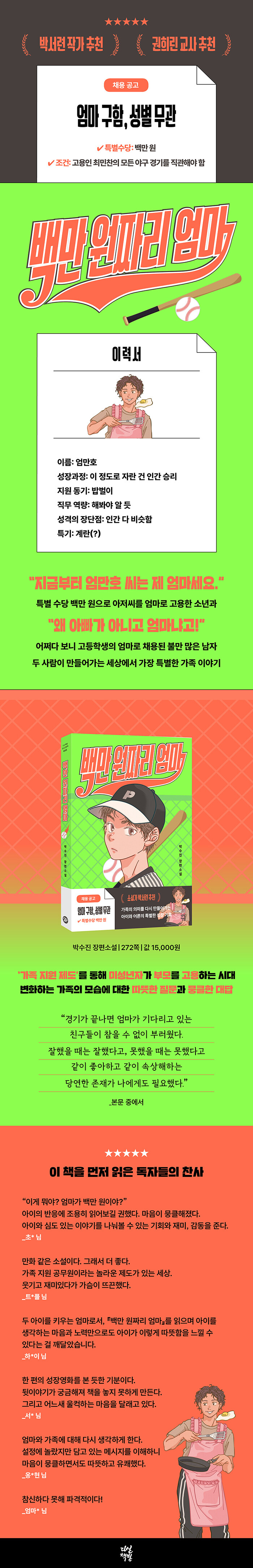 ¾ö¸¶°¡ ¹é¸¸ ¿øÀ̶ó°í? ¹º°¡ ¼ö»óÇÏ´Ù. ¾ö¸¶¸¦ °í¿ëÇÑ´Ù´õ´Ï ±»ÀÌ ¡®¾ÆÀú¾¾¡¯¸¦ ¼±ÅÃÇÑ ¿Àϰö ¾ß±¸ ¼Ò³â ÃÖ¹ÎÂùÀº ´õ ¼ö»óÇÏ´Ù. °Ô´Ù°¡ ä¿ë Á¶°ÇÀ̶õ °Ô ¡®ÃÖ¹ÎÂùÀÇ ¸ðµç ¾ß±¸ °æ±â¸¦ Á÷°üÇØ¾ß ÇÔ¡¯, ´Ü Çϳª´Ù. ¹Ì¼º³âÀÚ¸¦ ´ë»óÀ¸·Î ³ª¶ó¿¡¼ ¿î¿µÇÏ´Â °¡Á· Áö¿ø Á¦µµ°¡ Á¸ÀçÇÏ´Â ´ëÇѹα¹. ÀÌ Á¦µµ¸¦ ÀÌ¿ëÇÏ¸é ½ÃÇèÀ» Åë°úÇØ °¡Á· Áö¿ø °ø¹«¿øÀÌ µÈ ¾î¸¥À» °¡Á·À¸·Î ä¿ëÇÒ ¼ö ÀÖ´Ù. ¹ÎÂùÀº ÀÌ ¼ºñ½º¸¦ ÅëÇØ ¾ö¸¶¸¦ ±¸ÇÏ´Â °ø°í¸¦ ³Â´Ù. °æ·Âµµ, Àڰݵµ ÇÊ¿ä ¾øÀ¸´Ï ±×³É ÀÚ½ÅÀÇ ¾ß±¸ °æ±â¸¦ º¸±â¸¸ ÇÏ¸é µÈ´Ù´Â ÆÄ°ÝÀûÀÎ Á¶°Çµµ ³»°É¾ú´Ù.