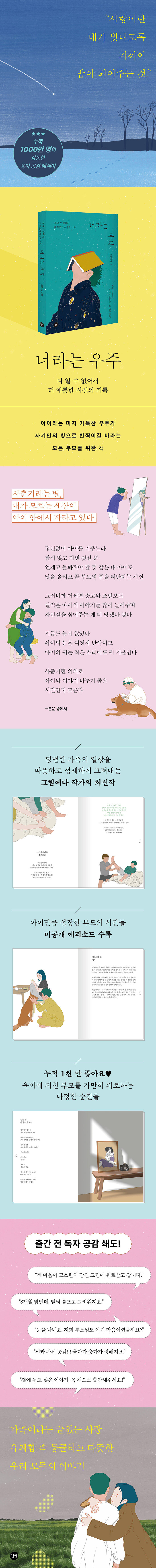 ¾ÆÀ̶ó´Â ¹ÌÁö °¡µæÇÑ ¿ìÁÖ¸¦ ÇÑ °ÉÀ½ µÚ¿¡¼ °æÀÌ·Ó°Ô °üÂûÇÏ°í ¹¬¹¬È÷ ¹è¿õÇÏ´Â ºÎ¸ðÀÇ ´ÙÁ¤ÇÑ ¼ø°£µéÀ» ³²°ÜµÎ°í ½Í¾ú´Ù. »ç¶ûÀ̶õ ¾ÆÀÌ¿¡°Ô ²÷ÀÓ¾øÀÌ ¹«¾ð°¡¸¦ ÇØÁÖ´Â °ÍÀÌ ¾Æ´Ï¶ó, ¾ÆÀ̰¡ °¡Áø °íÀ¯ÇÑ ºûÀ» ºÎ¸ðÀÇ ¿å½ÉÀ̳ª ºÒ¾ÈÀ¸·Î °¡¸®Áö ¾Ê´Â °ÍÀÓÀ» ¡¶³Ê¶ó´Â ¿ìÁÖ¡·¸¦ ¾²¸ç ´Ù½Ã±Ý ±ú´Þ¾Ò´Ù. ¾îÁ¦º¸´Ù ¸Ö¾îÁø ¾ÆÀÌÀÇ µÞ¸ð½À¿¡¼ ´õ ±íÀº »ç¶ûÀ» ¹è¿ö°¡´Â ¸ðµç ºÎ¸ð¿¡°Ô ´Ü´ÜÇÑ À§·Î°¡ µÇ±â¸¦ ¹Ù¶õ´Ù. ¾²°í ±×¸° Ã¥À¸·Î ¡¶ÃµÃµÈ÷ Å©·Å¡·, ¡¶¶È¶È¶È! Çɶõµå À°¾Æ¡·, ¡¶¿Ïº®ÇÏ°Ô »ç¶ûÇÏ´Â ³Ê¿¡°Ô¡·, ¡¶³Ê¿¡°Ô »ç¶ûÀ» ¹è¿î´Ù¡·, ¡¶¿À´Ãµµ ¹Ý¦ÀÌ´Â ³Ê¿¡°Ô¡·°¡ ÀÖ´Ù.