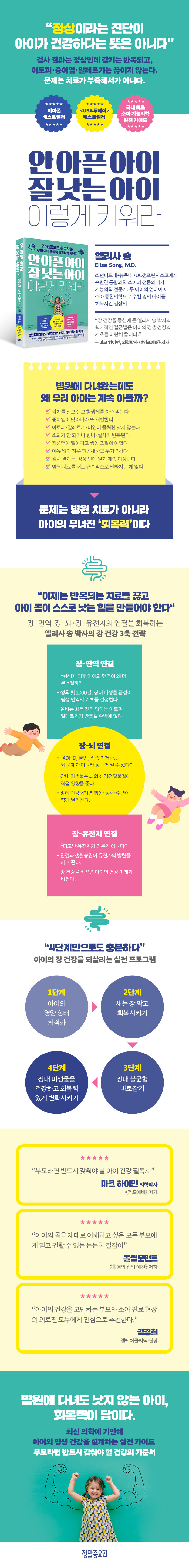Àå °Ç° ¼îÇÎ °¡À̵å, ¿µ¾çÁ¦ ¼±Åùý, µ¿Á¾¿ä¹ý ½ÇÀü °¡À̵å, ¿¡¼¾¼È ¿ÀÀÏ È°¿ë¹ý, ¹ÌÁֽŰæ ȸº¹ ·çƾ±îÁö ¼ö·ÏÇØ, Ã¥ ÇÑ ±ÇÀ¸·Î ¾ÆÀÌ °Ç°ÀÇ Àüü ±×¸²À» ±×¸± ¼ö ÀÖµµ·Ï Çß´Ù. ¿ì¸® ¾ÆÀ̰¡ ¹Ýº¹Çؼ ¾ÆÇ °Ç ¿îÀÌ ³ª»Û °Íµµ, ºÎ¸ð°¡ ºÎÁ·ÇÑ °Íµµ ¾Æ´Ï´Ù. ¾ÆÀÌ ¸öÀÇ È¸º¹ ±â¹ÝÀÌ ¹«³ÊÁ® Àֱ⠶§¹®ÀÌ´Ù. ±×¸®°í ±× ±â¹ÝÀº ´Ù½Ã ¼¼¿ï ¼ö ÀÖ´Ù.