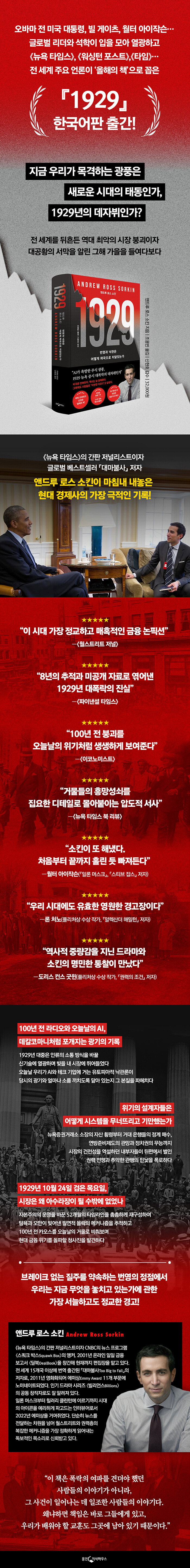 ¸Å³â Ãßõ µµ¼¸¦ ¹ßÇ¥Çϸç Àü ¼¼°è Áö¼º°èÀÇ ÀÌÁ¤Ç¥ ¿ªÇÒÀ» ÇØ¿Â ¹ö¶ô ¿À¹Ù¸¶ Àü ´ëÅë·É. ±×°¡ ÁÖ·Î ¼Ò¼³°ú ¿ª»ç ³íÇȼǿ¡ ÁýÁßÇÏ´ø °ü·Ê¸¦ ±ú°í, °æÁ¦°æ¿µ¼ ¡º1929¡»¸¦ ¡®¿ÃÇØÀÇ Ã¥¡¯À¸·Î ¼±Á¤ÇÑ °ÍÀº ÀÌ·ÊÀûÀÎ ÀÏÀÌ´Ù. ÀÌ´Â ¡º1929¡»°¡ ´Ü¼øÇÑ °æÁ¦ ºÐ¼®À» ³Ñ¾î, Àΰ£ º»¼ºÀÇ ¿À¸¸°ú ½Ã½ºÅÛÀÇ ºñ±ØÀ» ÇÑ ÆíÀÇ ´ë¼»ç½Ã·Î Ç®¾î³½ ¹®¸í»çÀû ±â·ÏÀ̶ó´Â Á¡¿¡ ÀÖ´Ù. ¿À¹Ù¸¶»Ó ¾Æ´Ï´Ù. ¡ºÀÏ·Ð ¸Ó½ºÅ©¡»ÀÇ ÀúÀÚ ¿ùÅÍ ¾ÆÀÌÀÛ½¼Àº ÀÌ Ã¥À» µÎ°í ¡°±âÀÌÇÒ Á¤µµ·Î ¿À´Ã³¯°ú ´à¾Æ¼ ¸¶Ä¡ ¿À´ÃÀÇ ´º½º¸¦ Àд µíÇÏ´Ù¡±°í °æÅºÇß°í, ǽ¸®Ã³»ó ¼ö»ó ÀÛ°¡ ·Ð ó³ë ¿ª½Ã ÀÌ ¼»ç°¡ °ú°ÅÀÇ ±â·ÏÀÌ ¾Æ´Ñ ¡°ÇöÀç¿¡µµ À¯È¿ÇÑ °æ°íÀ塱ÀÓÀ» °Á¶Çß´Ù. ±Û·Î¹ú ¸®´õ¿Í ¼®ÇеéÀÌ ÀÔÀ» ¸ð¾Æ ÀÌ Ã¥¿¡ ¿±¤ÇÏ´Â ÀÌÀ¯´Â ¸íÈ®ÇÏ´Ù. 1929³â ¿ù½ºÆ®¸®Æ®¸¦ Áý¾î»ïŲ Ž¿å°ú ¿À¸¸, ±×¸®°í ½Ã½ºÅÛÀÇ ºØ±« °úÁ¤ÀÌ À¯ÅäÇǾÆÀû ³«°ü·ÐÀÇ ½Ã´ë¿¡¼ ¿ì¸®°¡ ¸ñ°ÝÇÏ´Â ±¤±â¿Í °í½º¶õÈ÷ Æ÷°³Áö±â ¶§¹®ÀÌ´Ù.