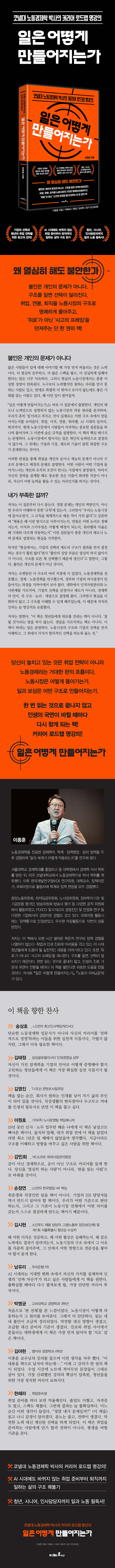 Ãë¾÷, ÀÌÁ÷, ¿¬ºÀ, ¿ö¶ó¹ë, AI ½Ã´ëÀÇ ÀÏÀÚ¸®±îÁö ¿ì¸®°¡ ÀÏÇÏ¸ç ¸¶ÁÖÇÏ´Â Çö½ÇÀûÀÎ Áú¹®µéÀ» ³ëµ¿½ÃÀåÀÇ ±¸Á¶¶ó´Â °üÁ¡¿¡¼ Ç®¾î³½ Ã¥ÀÌ´Ù. ¸¹Àº »ç¶÷µéÀÌ ÀÏÀ» °³ÀÎÀÇ ³ë·Â°ú ´É·ÂÀÇ ¹®Á¦·Î ÀÌÇØÇÏÁö¸¸, ÀúÀڴ ä¿ë°ú º¸»ó, ½ÂÁø°ú À̵¿ÀÌ ½ÇÁ¦·Î´Â ±â¾÷ÀÇ Àü·«°ú ½ÃÀåÀÇ ±ÔÄ¢, Á¦µµ¿Í ±â¼ú º¯È ¼Ó¿¡¼ °áÁ¤µÈ´Ù°í ¸»ÇÑ´Ù.