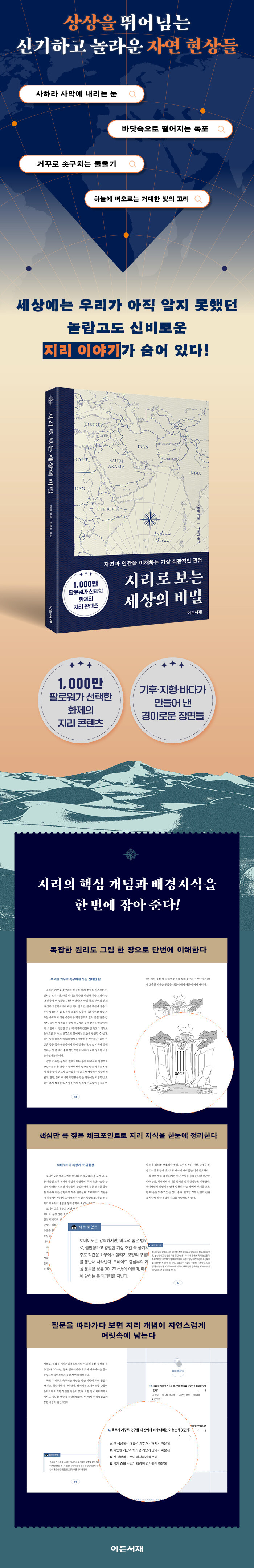<Áö¸®·Î º¸´Â ¼¼»óÀÇ ºñ¹Ð>¿¡¼ ±×´Â ¼¼°è °÷°÷ÀÇ ½Å±âÇÑ ÀÚ¿¬ Çö»ó ¼Ó¿¡ ¼ûÀº ¿ø¸®¸¦ ½±°í »ý»ýÇÏ°Ô ¼³¸íÇϸç, ¼¼»óÀ» ¹Ù¶óº¸´Â »õ·Î¿î ½Ã°¢À» ¼±¹°ÇÑ´Ù. ÇÑ ±ÇÀ¸·Î ³¡³»´Â Áö¸®ÇÐ ÀÔ¹®¼·Î, ´Ù¾çÇÑ Áö¸® Çö»ó°ú ±× ¹è°æÁö½ÄÀ» ÇÑ ¹ø¿¡ ÀÌÇØÇÒ ¼ö ÀÖµµ·Ï µ½´Â´Ù.