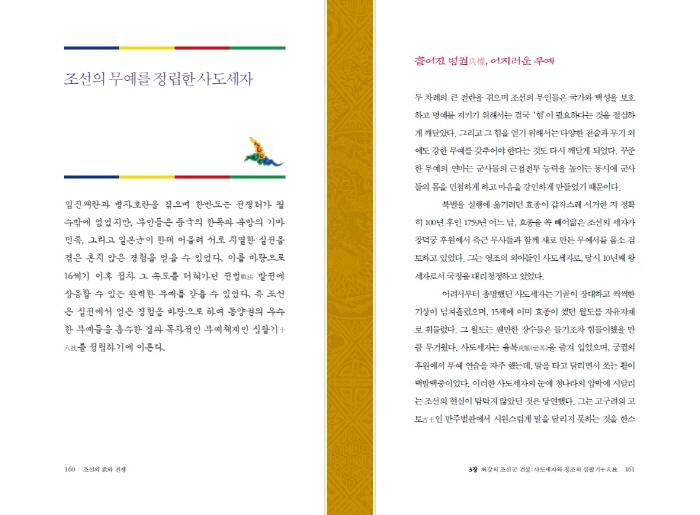 Á¤Á¶ 14³â, 1790³â ¾î´À º½³¯, ½ÉÇ÷À» ±â¿ï¿© ¿Ï¼ºµÈ ¹«¿¹¼°¡ Á¤Á¶¿¡°Ô ¿Ã·ÁÁ³´Ù. ÀÌ Ã¥Àº ÃÑ 5±ÇÀ¸·Î ÀÌ·ç¾îÁ® ÀÖ¾ú´Âµ¥, ¸¶Áö¸· ±ÇÀº ¾ÕÀÇ ³»¿ë Áß¿¡¼ ½ÇÁ¦ÀûÀÎ ¹«¿¹µ¿ÀÛÀÇ ³»¿ëÀ» Çѹ®À» ¸ð¸£´Â ¹é¼ºµéµµ ½±°Ô ¾Ë ¼ö ÀÖµµ·Ï Çѱ۷ΠǮÀÌÇÑ °ÍÀ̾ú´Ù. À̸¦ ¹Þ¾Æº» Á¤Á¶´Â ¾Æ¹öÁö »çµµ¼¼ÀÚÀÇ ¸ð½ÀÀÌ ´Ù½Ã±Ý ¶°¿Ã¶ú´Ù. ¾Æ¹öÁö »çµµ¼¼ÀÚ°¡ ¸ø´Ù ÀÌ·é Á¶¼± ¹«¿¹ÀÇ ÅëÀÏÀ» ÀÌ·ç°í, ¼¼»óÀÇ ºûÀ» Á¦´ë·Î º¸Áö ¸øÇÑ ¹«¿¹½Åº¸¸¦ µÇ»ì·Á³½ °ÍÀ̾ú´Ù. Á¤Á¶´Â ¸¶Ä§³» ¾Æ¹öÁöÀÇ ¾÷ÀûÀ» À̾î¹Þ¾Æ ÈξÀ ¶Ù¾î³ °á°ú¹°À» ¾ò¾î³Â´Ù. Á¤Á¶´Â ÀÚ¶û½º·¯¿î ÀÌ ¹«¿¹¼¿¡ ¡º¹«¿¹µµº¸ÅëÁöÙëçÝÓñÜÏ÷×ò¤¡»¶ó´Â À̸§À» ÇÏ»çÇß´Ù.