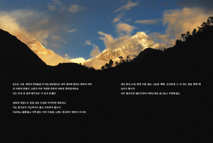 »ýȰ¿¡ Âîµç ÀÚµéÀº »êÁ¤À¸·Î ¿Ã¶ó¾ß Çϰí Á×À½¿¡ Âîµç ÀÚµéÀº ¸¶À»·Î ³»·Á¿Í¾ß ÇÑ´Ù. ±×¸®°í ºÐ¸í ±× ±æÀº ³Ð°Ô ¿·Á ÀÖ¾î¾ß ÇÑ´Ù. ±× ±æÀ» ¸·¾ÆµÎ°í ÀÚµ¿ÆßÇÁó·³ »ýȰÀÇ Àǿ常À» ÀÚ²Ù ¹Ð¾îºÙÀÌ´Â »çȸ´Â ÂüÀ¸·Î ¹«¼¿î »çȸÀÏ °ÍÀÌ´Ù. ±×´ë°¡ »ýȰ¿¡ ºÙ¹Ú¿© ÀÖ´Ù¸é ¸¶À½¼Ó¿¡³ª¸¶ Àú¸¸ÀÇ »êÁ¤ ÇϳªÂë ¸¶·ÃÇØµÎ±æ ¹Ù¶õ´Ù. ±×°÷¿¡¼ ¾ðÁ¦¶óµµ ¼¼»ó ³¡À¸·Î ´Ù°¡°¡ ´Ù½Ã±Ý ±æÀ» ÀÒÀ» ¼ö ÀÖµµ·Ï.