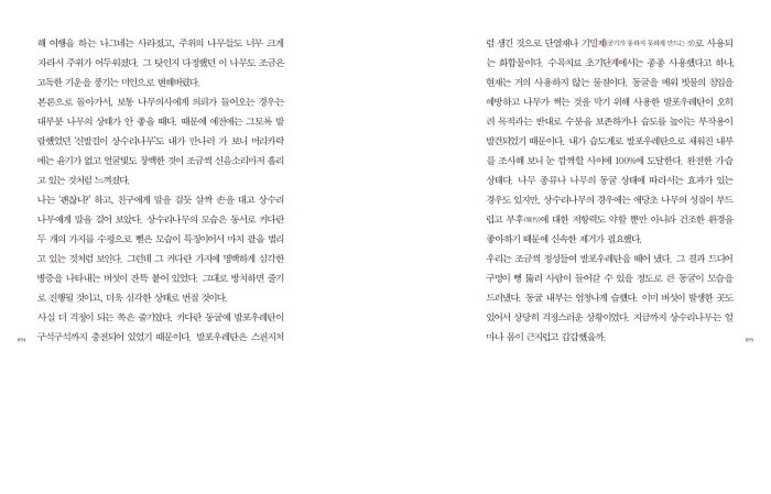 ¿©±â¼ ¾Ë ¼ö ÀÖ´Â °¡Àå Áß¿äÇÑ »ç½ÇÀº ¾ÇÁ¶°ÇÀÇ ³¯¾¾°¡ ¹Ýµå½Ã ³ª¹«¸¦ ±«·ÓÈ÷±â¸¸ ÇÏ´Â °ÍÀº ¾Æ´Ï¶ó´Â °ÍÀÌ´Ù. ¹Ù¶÷À¸·Î Èçµé¸®Áöµµ ¾Ê°í ¾Æ¹« Àڱصµ ¾øÀ¸¸é »Ñ¸®´Â °è¼Ó ¾àÇØÁö°Ô µÈ´Ù. ¿ÀÈ÷·Á ¹Ù¶÷ÀÌ Àֱ⠶§¹®¿¡ ±× ÀúÇ׿¡ ÀÇÇØ ¹ß´ÞÇÏ°Ô µÇ´Â °ÍÀÌ´Ù. ưưÇÑ »Ñ¸®ÀÇ °î¼±Àº ¿äÄÁ´ë »ç¶÷À¸·Î Ä¡¸é ÇèÇÑ »ê°ñ¿¡ »ç´Â »ç¶÷¿¡°Ô ÀÚ¿¬½º·´°Ô »ý±ä »ýȰ±ÙÀ° °°Àº °ÍÀÌ´Ù. ÀÌ ¡®´ÀƼ³ª¹« ¼ö¿ø¡¯ÀÇ ´ÀƼ³ª¹«´Â Åä¾çȯ°æÀÌ Á¦´ë·Î °®ÃçÁöÁö ¸øÇÑ ¸¸Å ¹Ý´ë·Î ¿ïÅüºÒÅü ±â¼¼°¡ ¿Õ¼ºÇÑ ¾Æ¸§´Ù¿î »Ñ¸®¸¦ »¸°Ô µÈ °ÍÀÏ ÅÍ. °À» ´Þ·Á¿Â ¹Ù¶÷Àº ¾öÇϰÔ, ±×·¯¸é¼µµ ºÎµå·´°Ô ´ÀƼ³ª¹«¸¦ Ű¿ö³½ °ÍÀÌ´Ù.