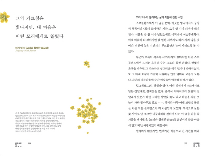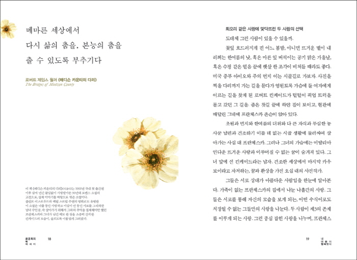 Ã¥À» ÅëÇØ¼ ¿ì¸®´Â ±×³à°¡ ¼Ò°³ÇÑ ¾Æ¸§´Ù¿òÀ» È£ÈíÇÒ ¼ö ÀÖ´Ù. ±× ¼û°áÀº »ì¾Æ°¥ ÈûÀ» ÁØ´Ù. ±×¸®°í Ÿ»þ´Â ²ÉµéÀÌ Àִ dz°æÀ» ÅëÇØ ¿ì¸®¿¡°Ô °¡¸£ÃÄÁØ´Ù. ÁÖ¾îÁø »îÀ» ÀÌ¿ÕÀÌ¸é ¾Æ¸§´ä°Ô °¡²Ù¾î°¡¶ó°í. ±×³à´Â Á×À½À» ÅëÇØ ¿ì¸®¿¡°Ô ¸»ÇÑ´Ù. ´©±¸¿¡°Ô³ª ¸¶Áö¸·ÀÌ °Å±â ÀÖ°í ±×°÷±îÁö °¡´Â ±æÀÌ ÀλýÀ̶ó°í, ±× ±æÀÌ ³¡³¯ ¶§±îÁö ²ÉÀ» ½ÉÀ¸¶ó°í. ±×³à´Â ¡¶Å¸»þÀÇ Á¤¿ø¡·À¸·Î ¼¼»ó¿¡ Ä¡À¯¸¦ ¼±¹°Çß´Ù. ³ª´Â ¹«¾ùÀ¸·Î ¼¼»ó¿¡ Ä¡À¯¸¦ ¼±¹°ÇÒ °ÍÀΰ¡. Áö±Ý ³ª´Â ¾î¿©»Û Á¤¿ø »çÁø ¾Õ¿¡¼ ±íÀº °í¹Î¿¡ Àá°Ü ÀÖ´Ù. ¡ª 62p