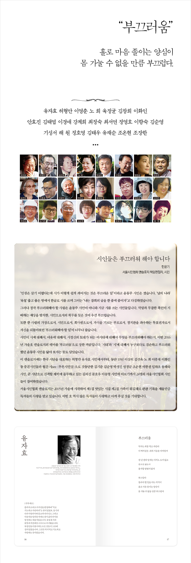 ÀúÀÚ À¯ÀÚÈ¿ ½ÃÀÎÀº ºÎ»ê¿¡¼ ž ¼¿ï´ë ºÒ¹®°ú¸¦ Á¹¾÷ÇÑ ÈÄ ¿À·§µ¿¾È ÁÖºÒ Æ¯ÆÄ¿ø, ¾ÞÄ¿¸Ç µî ¹æ¼ÛÀÎÀ¸·Î ÀÏÇß´Ù. 1968³â ¡®½Å¾ÆÀϺ¸¡¯¿Í ¡®ºÒ±³½Å¹®¡¯À¸·Î ÀÛǰ Ȱµ¿À» ½ÃÀÛÇÏ¿´´Ù. ½ÃÁý ¡¶¾ÆÁ÷¡·, Çѱ¹´ëÇ¥¸í½Ã¼±100 ¡¶¾Æ¹öÁöÀÇ Èû¡·, ¿ì¸®Çö´ë½ÃÁ¶100Àμ± ¡¶µ¥ÀÌÆ®¡·, À¯ÀÚÈ¿ ½Ã¼±Áý ¡¶¼º½º·¯¿î »À¡· ¡¶¾îµðÀϱî¿ä¡· µîÀÌ ÀÖ´Ù. Á¤Áö¿ë¹®Çлó, À¯½ÉÀÛǰ»ó, Çö´ëºÒ±³¹®ÇлóÀ» ¹Þ¾ÒÀ¸¸ç ¼¿ï½ÃÀÎÇùȸÀå, Áö¿ëȸÀå, ±¸»ó¼±»ý±â³ä»ç¾÷ȸÀå°ú ¡¶½Ã¿Í ½ÃÇС· ÁÖ°£À» ¸Ã°í ÀÖ´Ù.