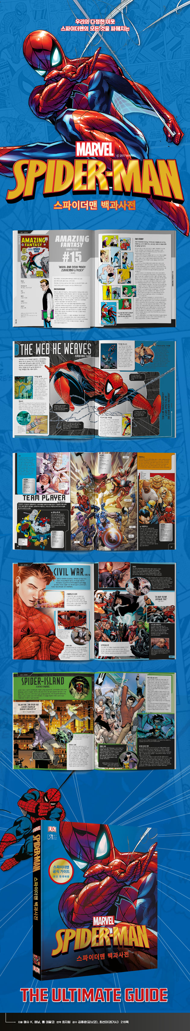 ¸¶ºí ÃÖ°íÀÇ Àαâ È÷¾î·Î, ½ºÆÄÀÌ´õ¸ÇÀ» ³¹³¹ÀÌ ÆÄÇìÄ£´Ù! ¡¶½ºÆÄÀÌ´õ¸Ç ¹é°ú»çÀü¡·Àº 1962³â 8¿ù¿¡ ù¼±À» º¸ÀÎ ÈÄ ¿À´Ã³¯±îÁö È÷¾î·ÎÀÇ ´ë¸í»ç·Î »ç¶û¹Þ´Â ½ºÆÄÀÌ´õ¸ÇÀÇ ¸ðµç °ÍÀ» ´ãÀº °¡À̵åºÏÀÌ´Ù. ½Ã´ë¿¡ µû¶ó ´Ù¾çÇÏ°Ô º¯ÈÇØ¿Â ÄÚ½ºÆ¬ºÎÅÍ ±×°¡ »ç¶ûÇÏ´Â °¡Á·°ú Ä£±¸µé, ¿¬Àεé, ¾ÆÀ̾ð¸ÇÀ̳ª ¿ï¹ö¸°, ǻó ÆÄ¿îµ¥À̼Ç(FF), ¾îº¥Àú½º µî ÇÔ²² ½Î¿ü´ø µ¿·á È÷¾î·Îµé°ú ±×¸° °íºí¸°, ¹úÃÄ, ´ÚÅÍ ¿ÁÅäÆÛ½º µî ½ºÆÄÀÌ´õ¸Ç°ú ÇÇÅÍ ÆÄÄ¿ÀÇ »îÀ» ÆÄ±«ÇÏ·Á´Â ½´ÆÛ ºô·±µéÀ» ´ã¾Ò´Ù. ´õÇÏ¿© ¾äÀüÇÑ Ã¥¹ú·¹¿´´ø °íµîÇлý ½ºÆÄÀÌ´õ¸ÇÀÇ ±â¿øºÎÅÍ ÆÄÄ¿ Àδõ½ºÆ®¸®ÀÇ »çÀåÀÌ µÈ ÃÖ±Ù À̽´±îÁö 1960³â´ëºÎÅÍ 2000³â´ë±îÁö ½Ã´ëº°·Î Á¤¸®µÈ ÁÖ¿ä ÄڹͽºÀÇ ÁٰŸ®¿Í ±âȹ ¹è°æ, ´ëÇ¥ÀûÀÎ ½ºÅ丮¶óÀÎÀ» ²Ä²ÄÈ÷ ¼³¸íÇØ, ½ºÆÄÀÌ´õ¸ÇÀÇ ÆÄ¶õ¸¸ÀåÇÑ ¿ª»ç¸¦ ÇϳªÇϳª º¼ ¼ö ÀÖ´Ù.