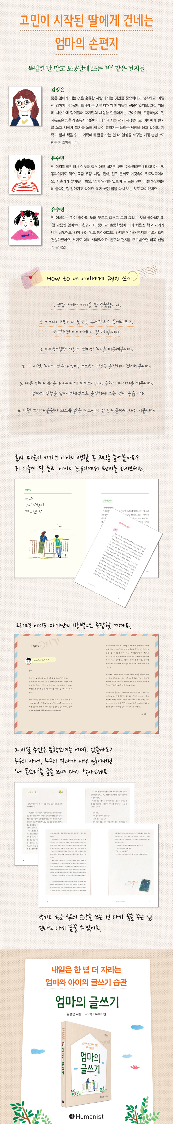 ¾ö¸¶°¡ µÇ¸é¼ ±ÛÀ» ¾²°Ô µÇ¾ú´Ù. °áÈ¥ ÈÄ¿¡µµ ÀÏÀ» Çß°í ¾ÆÀÌ µÑÀ» ³º¾Ò´Ù. µÎ ¾ÆÀ̸¦ ±â¸£¸é¼ ¾ö¸¶¶ó Çϱ⿡ ³Ê¹«³ª ¹Ì¼÷ÇÑ Á¸ÀçÀÓÀ» ±ú´Ý°í Ã¥À» Àб⠽ÃÀÛÇß´Ù. ÁÁÀº ¾ö¸¶°¡ µÇ´Â °ÍÀº ÈǸ¢ÇÑ »ç¶÷ÀÌ µÇ´Â °Í¸¸Å Áß¿äÇÏ´Ù°í »ý°¢ÇÑ´Ù. ¾î¸± Àû ¾ö¸¶°¡ ½áÁ̴ּø µµ½Ã¶ô ¼Ó ¼ÕÆíÁö°¡ ³»°Ô Áֽа¡Àå Å« ¼±¹°À̾úÀ½À» ±â¾ïÇϸç, »çÃá±â¿¡ Á¢¾îµé¾î Àڱ⸸ÀÇ ¼¼»óÀ» ¸¸µé¾î°¡´Â Å«¾ÆÀÌ¿Í ÃʵîÇлýÀÌ µÈ ÀÚÀ¯·Î¿î ¿µÈ¥ÀÇ ¼ÒÀ¯ÀÚ ÀÛÀº¾ÆÀÌ¿¡°Ô ÆíÁö¸¦ ¾²±â ½ÃÀÛÇß´Ù. ±ÛÀ» ¾²¸é¼ »îÀÌ ´Þ¶óÁö´Â ³î¶ó¿î üÇèÀ» Çϰí ÀÖ´Ù. ÁöÀº Ã¥À¸·Î ¡¶°¡Á·¿¡°Ô ±ÇÇÏ´Â Àι®ÇС·¡¶¾ö¸¶ÀÇ ±Û¾²±â¡·, ¡¶¾ö¸¶°¡ ½ÃÀÛÇÏ°í ¾ÆÀ̰¡ ³¡³»´Â ¾ö¸¶Ç¥ ¿µ¾î¡·, ¡¶Áß1 µ¶¼ ½À°ü¡·(°øÀú) µîÀÌ ÀÖ´Ù.