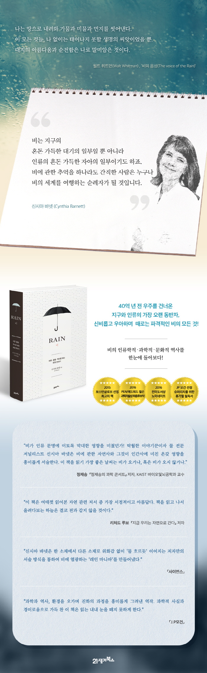 ÀÌ Ã¥Àº ºñ°¡ óÀ½ ±â·ÏµÈ ¿ø½Ã½Ã´ë¿¡¼ºÎÅÍ Áß¼¼¿Í ±Ù´ë¸¦ °ÅÃÄ ¿À´Ã³¯¿¡ À̸£±â±îÁö ºñÀÇ ±â¿ø°ú ¹®¸íÀÇ ½ÃÀÛ, °¿ì¿¡ ¾ôÈù °úÇÐÀû »ç°Ç»ç°í, ±â»óÇаú Àϱ⿹º¸ÀÇ ¿ª»ç, ºñÀÇ ¼Á¤¼ºÀÌ ¹®È¿Í ¿¹¼ú ¿µ¿ª¿¡ ÁØ ¿µÇâ µî ¿ì¸®°¡ ¹Ìó ¾ËÁö ¸øÇß´ø, Èï¹Ì·Ó°í ¸ÅȤÀûÀÎ ºñÀÇ ¼¼°è·Î µ¶ÀÚµéÀ» ÃÊ´ëÇÑ´Ù.