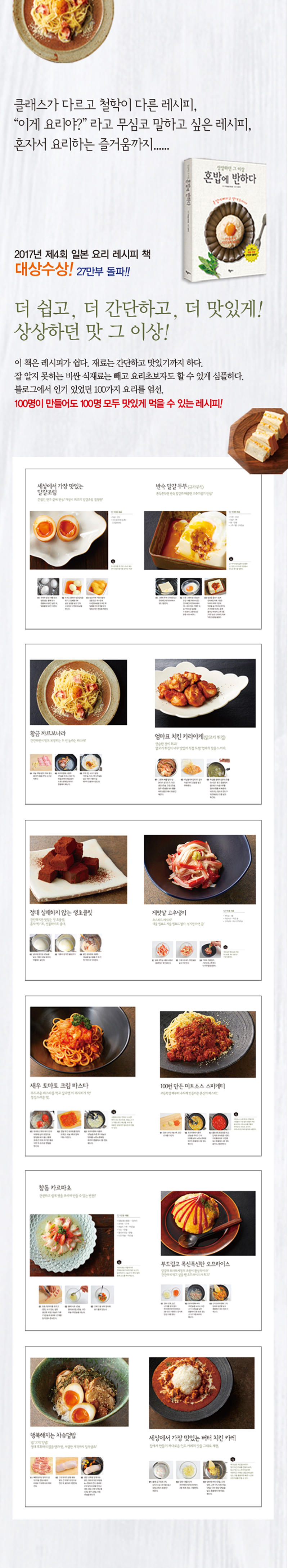 È¥¹äÀÌ ÁøÈÇϰí ÀÖ´Ù!! »ó»óÇÏ´ø ±× ÀÌ»óÀÇ ¿ä¸®, ¾öû ½¬¿î ·¹½ÃÇÇ, È¥¹äÀÇ ¸Å·Â¿¡ ºüÁø´Ù. °£´ÜÇÏ°í ¸ÀÀÖ¾î¼ ¿ä¸®ÇÏ°í ½ÍÀº ÀÇ¿åÀÌ ¼Ú´Â Ã¥! ¹Ù¾ßÈå·Î È¥ÀÚ ¹ä ¸Ô°í, È¥ÀÚ ¿©ÇàÇϰí, È¥ÀÚ ¿µÈµµ º¸´Â È¥ÀÚ »ç´Â ½Ã´ë´Ù. ¿äÁò ¿©·¯ °¡Áö »çÁ¤À¸·Î È¥ÀÚ¼ ¹äÀ» ¸Ô´Â °æ¿ì°¡ ¸¹´Ù. ÀÌ Ã¥Àº ÀÌ·± ½Ã´ëÀÇ È帧¿¡ µü µé¾î¸Â´Â È¥¹äÁ·À» À§ÇÑ ¿ä¸®Ã¥ÀÌ´Ù. -MD Ãßõ-
