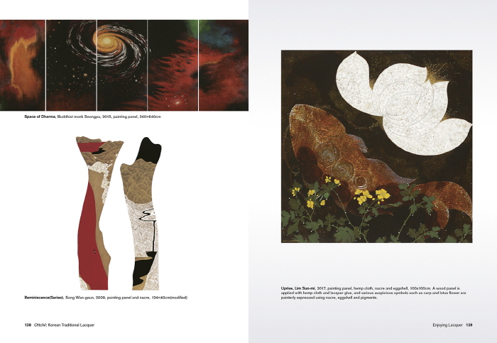 This book covers lacquering craft according to base materials: wood, metal, ceramic, fabric, paper, and leather, while explaining lacquer paintings separately.