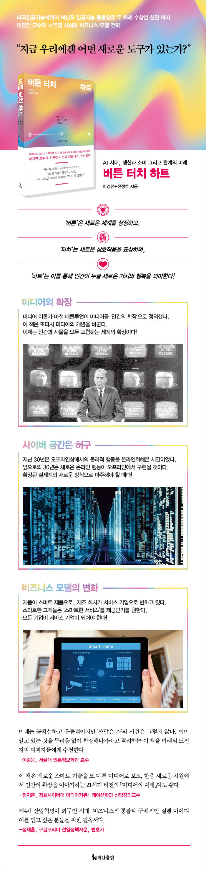 ¸ðµç °ÍÀÌ ¹Ìµð¾î°¡ µÈ´Ù. ¸ðµç Á¦Ç°°ú °ø°£ÀÌ ¹Ìµð¾î°¡ µÊÀ¸·Î½á ±×°ÍÀ» »ç¿ëÇÏ´Â »ç¶÷ÀÇ °æÇèÀÌ È®ÀåµÇ°í ¼¼·»µðÇÇÆ¼°¡ ¹ß»ýÇϸç, ÀÌ´Â »ç¾÷ÀÚ¿¡°Ô ½º¸¶Æ®ÇÑ ¼ÒÅëÀ» ÅëÇÑ »ç¾÷ ±âȸ¸¦ Á¦°øÇÑ´Ù. ¿©±â¼ Áß¿äÇÑ °ÍÀº ½º¸¶Æ® Á¦Ç° ¹× °ø°£À¸·ÎÀÇ ÁøÈ´Â ÀÚ¿¬½º·¯¿î Çö»óÀ̸ç ÀÌ·¯ÇÑ º¯È¸¸À¸·Î´Â ºñÁî´Ï½º ¸ðµ¨ÀÇ Çõ½ÅÀ̳ª È®ÀåÀÌ ÀϾÁö ¾Ê´Â´Ù´Â Á¡ÀÌ´Ù. ½º¸¶Æ® Á¦Ç° ¹× °ø°£ÀÌ ¹Ìµð¾îÀÇ ¿ªÇÒÀ» ÇÒ ¶§ ºñÁî´Ï½º ¸ðµ¨ÀÇ º¯È°¡ ÀϾٴ Á¡¿¡ ÁÖ¸ñÇÒ Çʿ䰡 ÀÖ´Ù. ½º¸¶Æ® Á¦Ç° ¹× °ø°£ÀÇ »ç¿ë µ¥ÀÌÅʹ Ŭ¶ó¿ìµå³ª ºí·ÏüÀο¡ ÀúÀåµÇ°í, ÀÌ µ¥ÀÌÅ͵éÀº ºÐ¼®µÇ¾î ´Ù½Ã °í°´À» À§ÇÑ ¸ÂÃã ¼ºñ½º Á¦°ø¿¡ Ȱ¿ëµÉ ¼ö ÀÖ´Ù. µ¥ÀÌÅÍ ºÐ¼®À» ÅëÇØ ½º¸¶Æ® Á¦Ç° ¹× °ø°£ ÆÇ¸Å¸¦ À§ÇÑ Àü·«°ú ½Ã»çÁ¡, »õ·Î¿î °úÇÐ Áö½ÄÀÌ µµÃâµÉ ¼öµµ ÀÖ´Ù. ÀÌ·¯ÇÑ µ¥ÀÌÅ͵éÀº ÀÚ»çÀÇ »õ·Î¿î ¼ºñ½º³ª Àü·«»Ó ¾Æ´Ï¶ó ´Ù¸¥ »ç¾÷ÀÚÀÇ »ç¾÷À» À§ÇØ ÆÇ¸ÅµÉ ¼öµµ ÀÖ´Ù. _pp.63¡64