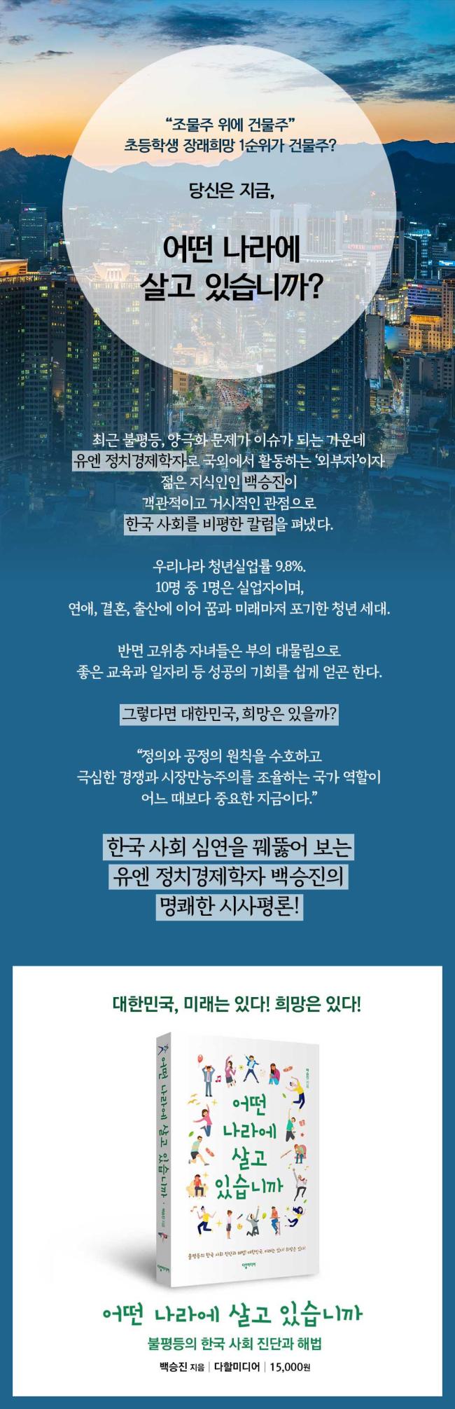 ÀúÀÚ´Â ÀÌ Ã¥¿¡¼ ¿ì¸®³ª¶ó Çö´ë Á¤Ä¡°æÁ¦ ¹ßÀü»ç¸¦ Åì¾Æº¸¸ç ½Ã´ëÁ¤½ÅÀ» ¸é¹ÐÈ÷ ºÐ¼®ÇßÀ¸¸ç, ƯÈ÷ ±× ¾î´À ¶§º¸´Ù ½É°¢ÇÑ ¼ÒµæºÒÆòµî․¾ç±ØÈ µîÀÇ »çȸ °ÝÂ÷·Î ÀÎÇØ È¥¶õ°ú À§±â¸¦ ¸ÂÀº Áö±Ý, À̸¦ ½Ã±ÞÈ÷ ÇØ°áÇÏ°í °Ç°Çϰí Áö¼Ó°¡´ÉÇÑ »çȸ¹ßÀüÀ» Ãß±¸ÇØ¾ß ÇÑ´Ù´Â ¸Þ½ÃÁö¸¦ ´ã¾Ò´Ù. -MDÃßõ