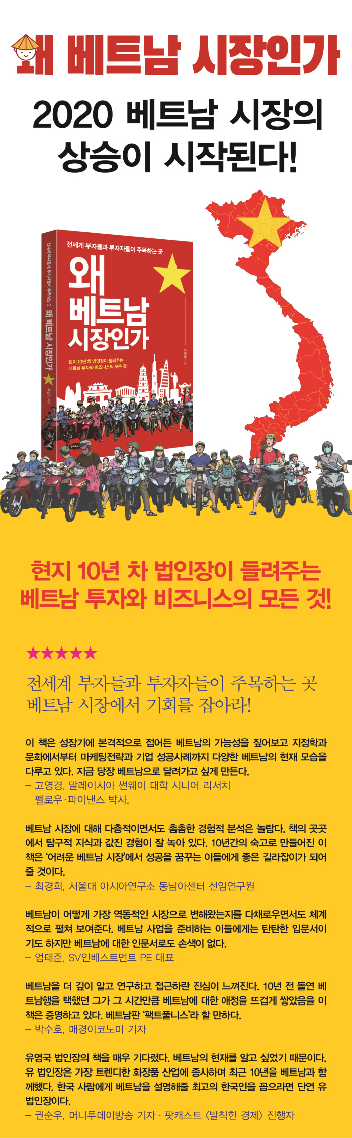 À¯¿µ±¹ ¹ýÀÎÀåÀÇ Ã¥À» ¸Å¿ì ±â´Ù·È´Ù. º£Æ®³²ÀÇ ÇöÀ縦 ¾Ë°í ½Í¾ú±â ¶§¹®ÀÌ´Ù. À¯ ¹ýÀÎÀåÀº °¡Àå Æ®·»µðÇÑ ÈÀåǰ »ê¾÷¿¡ Á¾»çÇϸç ÃÖ±Ù 10³âÀ» º£Æ®³²°ú ÇÔ²²Çß´Ù. Çѱ¹ »ç¶÷¿¡°Ô º£Æ®³²À» ¼³¸íÇØÁÙ ÃÖ°íÀÇ Çѱ¹ÀÎÀ» ²ÅÀ¸¶ó¸é ´Ü¿¬ À¯ ¹ýÀÎÀåÀÌ´Ù. ÃÖ±Ù Çѱ¹ »ç¶÷µé¿¡°Ô °¡Àå °íÆò°¡µÈ ±¹°¡¸¦ ²ÅÀ¸¶ó¸é º£Æ®³²ÀÌ´Ù. Á¦2ÀÇ Áß±¹À» ²Þ²Ù¸ç ¸¹Àº Çѱ¹ »ç¶÷µéÀº º£Æ®³² ºÎµ¿»êÀ» »ç°Ú´Ù¸ç, Çѱ¹ ½Ä´çÀ» ÇÏ°Ú´Ù¸ç º£Æ®³²Çà ºñÇà±â¸¦ ÅÀ°í ´ëºÎºÐÀº ºó¼ÕÀ¸·Î µ¹¾Æ¿À°í ÀÖ´Ù. À¯ ¹ýÀÎÀåÀÇ ºÐ¼®Àº Çö½ÇÀûÀÌ´Ù. ¡°ºñ ¿À´Â ³¯ ¿ÀÅä¹ÙÀÌ Å¸°í ´Ù´Ï´Âµ¥ ¾î¶»°Ô ÈÀåÀ» Çմϱî? ÇÏÁö¸¸ ÁöÇÏöÀÌ »ý±â¸é Á¤¸» Æø¹ßÀûÀ¸·Î ¼ºÀåÇÒ °Ì´Ï´Ù.¡± Àç¹Ì·Î º¸µç, »ç¾÷Çϱâ À§ÇØ º¸µç, ¼¼»ó ¹°Á¤À» ¾Ë°í ½Í¾î º¸µç ÇÑ ¹øÂëÀº ÀоîºÁ¾ß ÇÒ Ã¥ÀÌ´Ù.