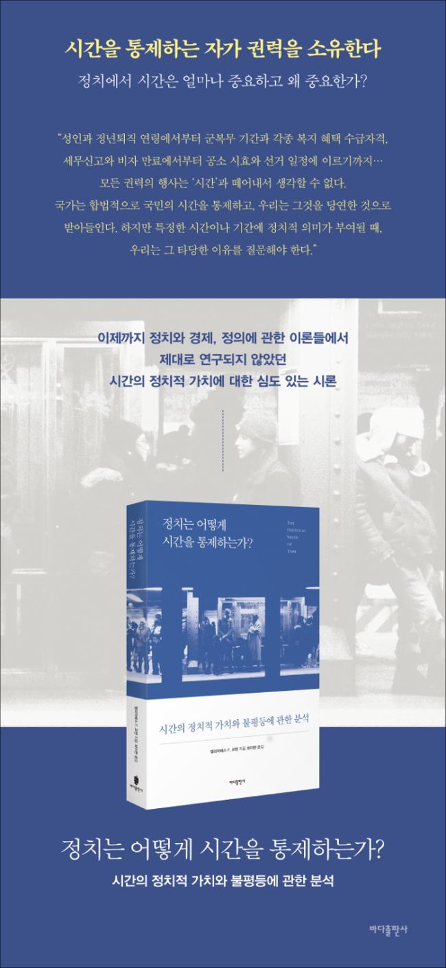 ¡°½Ã°£Àº ±× ºÒ°¡ÇÇÇÑ ½ÉÆÇ¿¡ ÀúÇ×ÇÏ·Á´Â ¸ðµç Àΰ£ÀÇ ½Ãµµ¸¦ °ÅºÎÇÏ´Â °¡Àå Èñ¼ÒÇÑ ÀÚ¿øÀÌ´Ù. ±× °á°ú ½Ã°£Àº ±Ç·Â°ú ÀÚ¿øÀ» ³õ°í ¹úÀÌ´Â ÅõÀï°ú ¹ÐÁ¢ÇÑ °ü°è¸¦ ¸Î´Â´Ù. ½ÇÁ¦·Î ½Ã°£Àº ±×·¯ÇÑ ÅõÀï¿¡ Àǹ̸¦ ºÎ¿©ÇÑ´Ù. ÇÏÁö¸¸ Á¤Ä¡À̷а¡µéÀº ½Ã°£¿¡ ´ëÇØ ÀÌÁ¦±îÁö º°·Î °ü½ÉÀ» ±â¿ïÀÌÁö ¾Ê¾Ò´Ù. ÀÌ ¸íÄèÇÏ°í ¸Å·ÂÀûÀÎ »õ Ã¥¿¡¼ ÀúÀÚ´Â ÀÌ·¯ÇÑ »óȲÀ» ¹Ù·ÎÀâÀ¸·Á ÇÑ´Ù. ±×³à´Â ½Ã°£ÀÇ Á¤Ä¡°æÁ¦ÇÐÀ» Àü°³Çϰí, ±Ç¸®¿Í ±Ç·Â°ú ºÐ¹è¿¡ °üÇÑ ¼ö¸¹Àº ³íÀï¿¡¼ ±×°ÍÀÌ °¡Áö´Â ÇÔÀǸ¦ º¸¿©ÁØ´Ù. Áß¿äÇÏ°í ½Å¼±ÇÑ °øÇåÀÌ´Ù.¡±