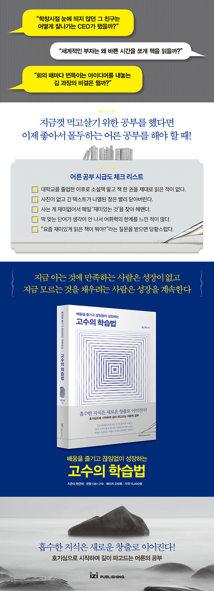 ¡º°í¼öÀÇ ÇнÀ¹ý¡»Àº ÁÁ¾Æ¼ ÇÏ´Â ¾î¸¥ÀÇ °øºÎ¸¦ ±ÇÇϴ åÀÌ´Ù. ÀúÀÚ´Â ¼¿ï´ëÇб³ ¼¶À¯°øÇаú¸¦ Á¹¾÷ÇØ ¹Ì±¹ ¾ÖÅ©·±´ëÇб³¿¡¼ °íºÐÀÚ°øÇÐ ¹Ú»ç ÇÐÀ§¸¦ ¹Þ¾Ò´Ù. ÇÏÁö¸¸ ±×´Â Çо÷À» ¸¶Ä£ ÈĺÎÅÍ Áö±Ý²¯ Æò»ýÀ» °øºÎÇÏ´Â »ç¶÷À¸·Î »ì¾Ò´Ù. ±×´Â Áö½ÄÀÌ ¹«±â°¡ µÈ´Ù´Â °ÍÀ» ¸ö¼Ò °æÇèÇϸ鼡®±×Àú ÁÁ¾Æ¼ ¸ôÀÔÇÏ´Â ¾î¸¥ÀÇ °øºÎ°¡ ÇÊ¿äÇÏ´Ù´Â °ÍÀ» ¸ðµÎ¿¡°Ô ±ÇÇϰíÀÚ Çß´Ù.