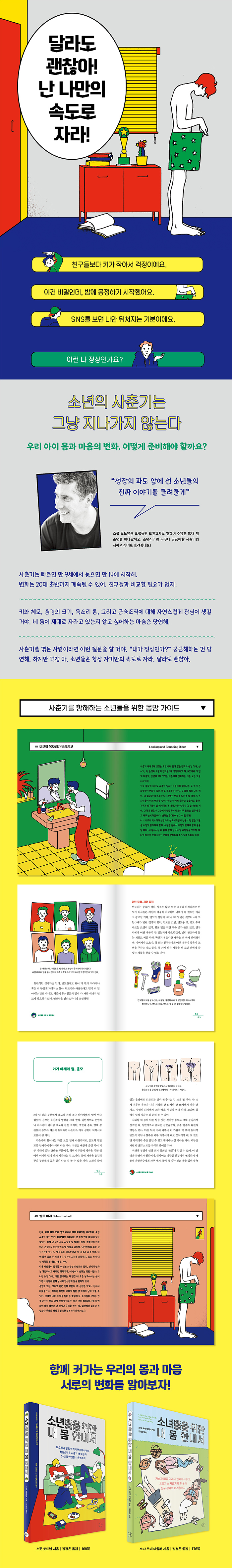 »çÃá±â¶ó´Â ¼ºÀåÀÇ ÆÄµµ ¾Õ¿¡¼ ¼Ò³âµéÀº ½±°Ô Èçµé¸®°í ¹æÈ²ÇÑ´Ù. ÁÖº¯ Ä£±¸µé°ú ºñ±³ÇÏ¸é¼ ¡®³»°¡ Á¤»óÀÎÁö¡¯ ºÒ¾ÈÇØÇÒ ¼Ò³âµéÀ» À§ÇØ ½ºÄà Åäµå³ÑÀÌ ³ª¼¹´Ù. 2001³âºÎÅÍ ÁßÇб³ º¸°Ç±³»ç·Î ÀÏÇØ¿Â ÀúÀÚ´Â ´©±¸º¸´Ù °¡±îÀÌ¿¡¼ û¼Ò³âµéÀÇ °í¹Î¿¡ ±Í ±â¿ï¿© ¿Ô´Ù. ÀÌ·¯ÇÑ °æÇè°ú º¸°Ç Áö½ÄÀ» ¹ÙÅÁÀ¸·Î »çÃá±âÀÇ Å©°í ÀÛÀº º¯È¸¦ 7°¡Áö ÁÖÁ¦·Î ³ª´² ¼Ò°³ÇÑ´Ù. Ű¿Í ¸ö¹«°Ô, Åаú »ý½Ä±â µî ½ÅüÀû º¯È¿¡¼ºÎÅÍ °¨Á¤, Ä£±¸, °¡Á·°úÀÇ °ü°è´Â ¹°·Ð, ºü¸£°Ô º¯ÈÇÏ´Â SNS¸¦ ÀÚ±â ÁÖµµÀûÀ¸·Î Áñ±â´Â ¹ý±îÁö ¼Ò³âÀ̶ó¸é ´©±¸³ª ±Ã±ÝÇØÇÒ ¡®ÁøÂ¥ À̾߱⡯¸¦ ÀüÇÑ´Ù.¡¶¼Ò³âµéÀ» À§ÇÑ ³» ¸ö ¾È³»¼¡·´Â 2019³â Ãâ°£µÈ ¡¶¼Ò³àµéÀ» À§ÇÑ ³» ¸ö ¾È³»¼¡·ÀÇ ÈļÓÀÛÀÎ ¼Ò³â ÆíÀ¸·Î, »çÃá±â¿¡ Á¢¾îµç ¼Ò³â°ú ¼Ò³à°¡ ÇÔ²² Àб⿡ ÁÁÀº Ã¥ÀÌ´Ù. ¡®³²ÀÚ¾ÖµéÀº ½Å°æ ¾²Áö ¾Ê¾Æµµ ±×³É ÀÚ¶õ´Ù´Âµ¥¡¯¶ó°í »ý°¢Çß´ø ºÎ¸ð¿Í ±³À°°ü°èÀÚ¸¦ À§ÇÑ Ã¥À¸·Îµµ ¸ÂÃãÇÏ´Ù.
