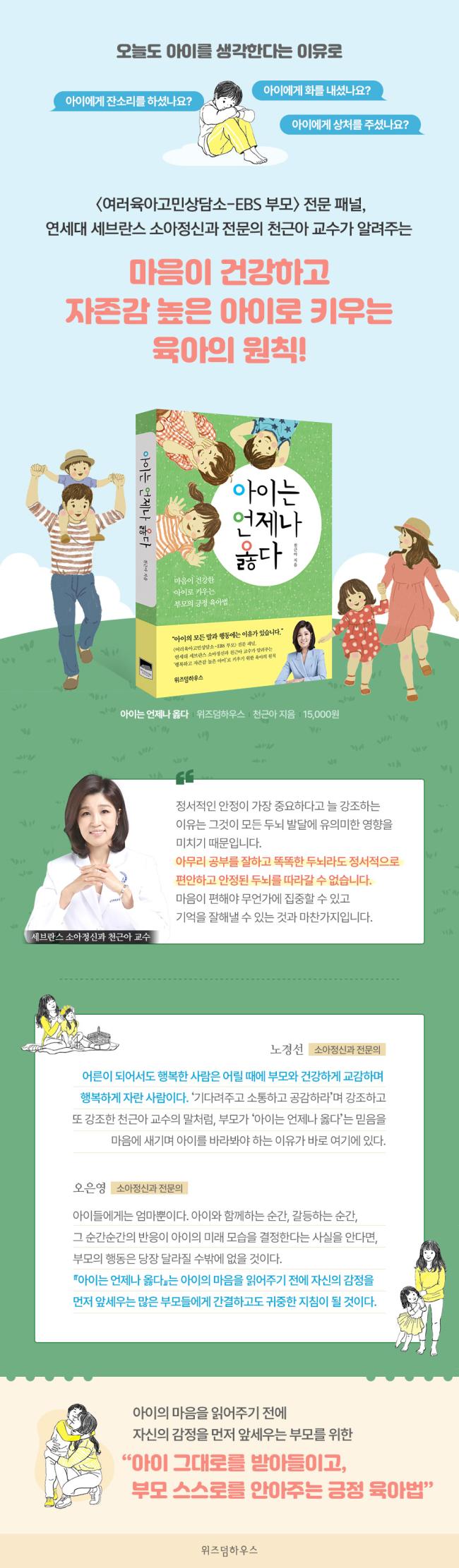 Áö³ 25³â°£ °ø°¨°ú ÀÌÇØ¿¡ ¾î·Á¿òÀ» °Þ´Â ¾ÆÀÌ¿Í ºÎ¸ð°¡ ¼·Î ¸¶À½À» ¿°í ¼ÒÅëÇϵµ·Ï Èû¾²°í ÀÖÀ¸¸ç, ¼ö¸¹Àº Áø·á »ó´ã°ú µÎ ¾ÆµéÀ» Ű¿î ¾ö¸¶·Î¼ÀÇ °æÇèÀ» ÅëÇØ ±ú´ÞÀº À°¾ÆÃ¶ÇÐÀ» ÀÌ Ã¥ ¡º¾ÆÀÌ´Â ¾ðÁ¦³ª ¿Ç´Ù(°³Á¤Áõº¸ÆÇ)¡»¿¡ ´ã¾Æ³Â´Ù.