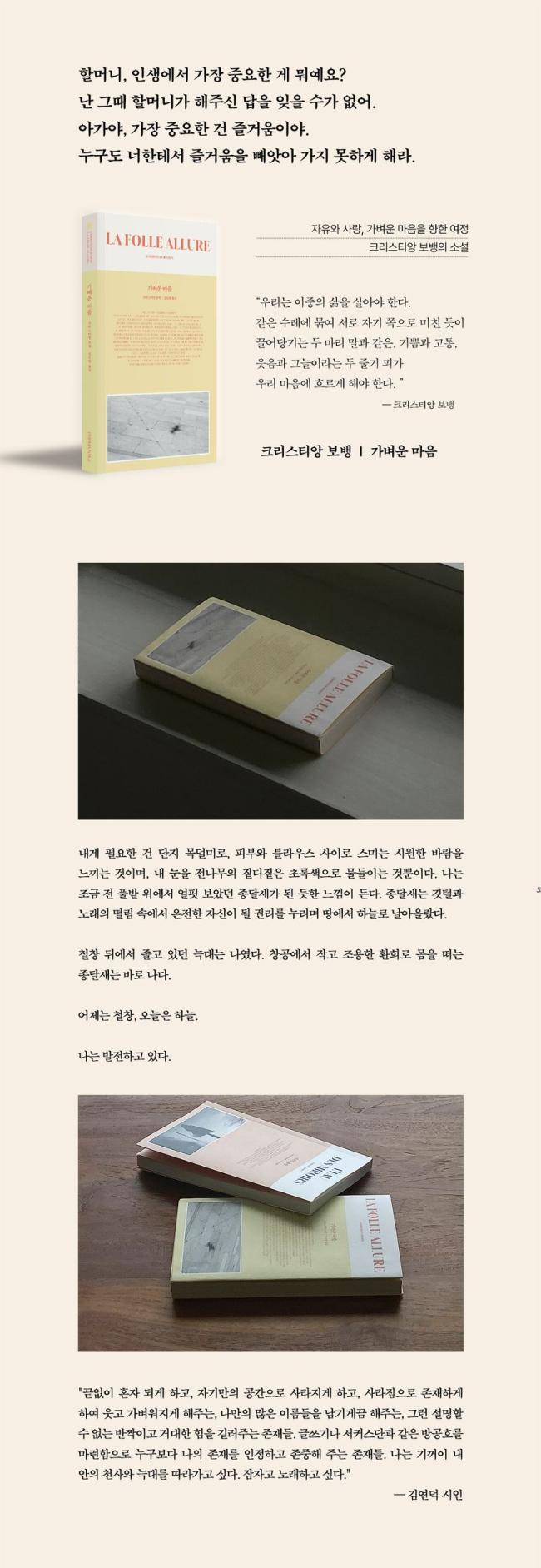 £Àº ¾îµÎ¿ò ¼Ó¿¡¼µµ »îÀÇ È¯Èñ¸¦ Âù¾çÇÏ´Â ½ÃÀÎÀÌ ¾²´Â ¼Ò¼³Àº ¾î¶² ¸ð½ÀÀϱî. <°¡º¿î ¸¶À½>Àº º¸¹ðÀÇ ½ÃÀûÀÎ ¹®Àå°ú ´Ü¾îµéÀÌ °¡ºÀÌ ³¯¾Æ¿Ã¶ó ÃãÃ߸ç Èå·ÁÁø ¿µÈ¥¿¡ ºûÀ» ºñÃß°í, ¿ì¸® ¾È¿¡ ¿À·¡ ¹¯Çô ÀØÇôÁ³´ø °ÍµéÀ» ±ú¿ö ´Ù½Ã Çѹø »îÀÇ È¯Èñ·Î ¿ì¸®¸¦ ÃÊ´ëÇÏ´Â ÀÛǰÀÌ´Ù.