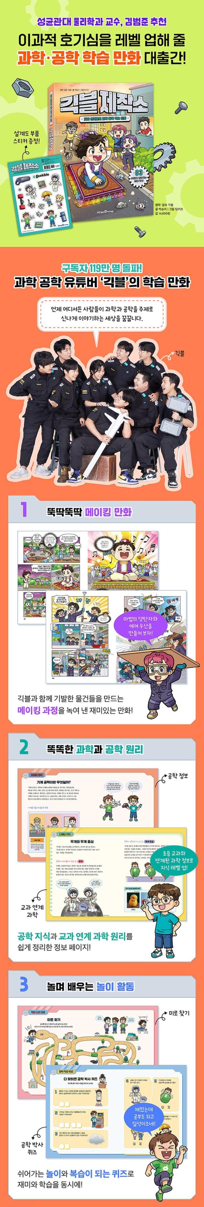 °øÇÐ Áö½ÄÀ» ½±°Ô ¾Ë·Á ÁÖ´Â ¡®±Ã±ÝÇÑ °øÇС¯, ¸ÞÀÌÅ·¿¡ Ȱ¿ëÇÑ ±³°ú ¿¬°è °úÇÐ ¿ø¸®¸¦ ´õ ÀÚ¼¼È÷ ¹è¿ì´Â ¡®Á¦Æ®ÀÇ ¼öø¡¯, ¾î¸°ÀÌ µ¶ÀÚµéÀÌ Áö·çÇØÇÏÁö ¾Ê°í Ã¥À» ¿Ïµ¶ÇÒ ¼ö ÀÖ°Ô µ½´Â ¡®±ãºí ³îÀÌ Å¸ÀÓ¡¯, °£´ÜÇÑ ÄûÁî·Î º»¹®À» º¹½ÀÇÏ´Â ¡®°øÇÐ ¹Ú»ç ÄûÁ µî ´Ù¾çÇÑ ºÎ¼Ó ÆäÀÌÁö¸¦ ¼ö·ÏÇØ °úÇаú °øÇп¡ ´ëÇØ ¾ÆÀ̵éÀÌ Áñ°Ì°Ô Á¢±ÙÇÒ ¼ö ÀÖµµ·Ï ±¸¼ºÇß¾î¿ä.