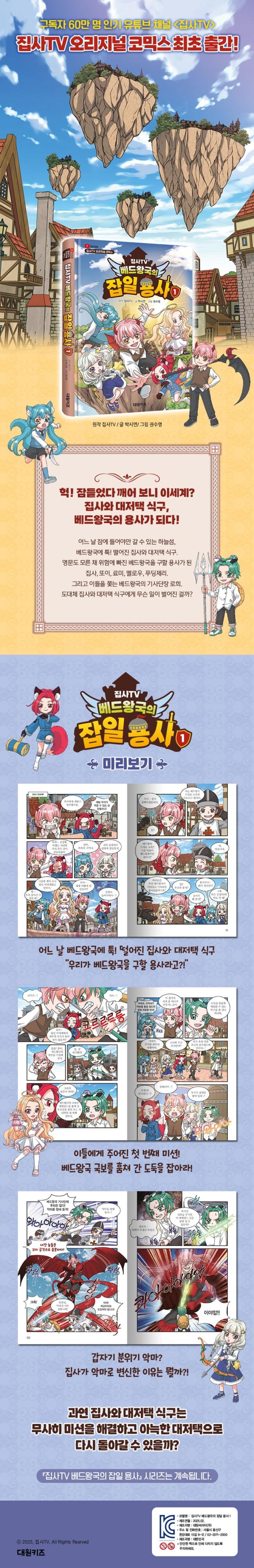 Àá¿¡ µé¾î¾ß¸¸ °¥ ¼ö ÀÖ´Â º£µå¿Õ±¹À» ¹è°æÀ¸·Î ½ÃÀ۵Ǵ ¡ºÁý»çTV º£µå¿Õ±¹ÀÇ ÀâÀÏ ¿ë»ç¡» ½Ã¸®Áî´Â Àαâ À¯Æ©ºê ä³Î <Áý»çTV> ¿À¸®Áö³Î ÄÜÅÙÃ÷¸¦ ÀçÇØ¼®ÇØ ¾Ç¸¶ Áý»ç¿Í °¢±â ´Ù¸¥ ¸Å·ÂÀ» Áö´Ñ ¶ÇÀÌ, ·á¹Ì, ¸á·Î¿ì, ǪµùÁ¦¸®, ·ÎÈñÀÇ À̼¼°è ¸ðÇè´ãÀ» ´Ù·ç°í ÀÖ´Ù. ÀÌ Ã¥¿¡¼ Áý»ç¿Í ¶ÇÀÌ, ·á¹Ì, ¸á·Î¿ì, ǪµùÁ¦¸®´Â À§Çè¿¡ ºüÁø º£µå¿Õ±¹À» ±¸ÇÒ ¿ë»ç·Î, ·ÎÈñ´Â º£µå¿Õ±¹ÀÇ ±â»ç´ÜÀåÀ¸·Î º¯½ÅÇÑ´Ù.