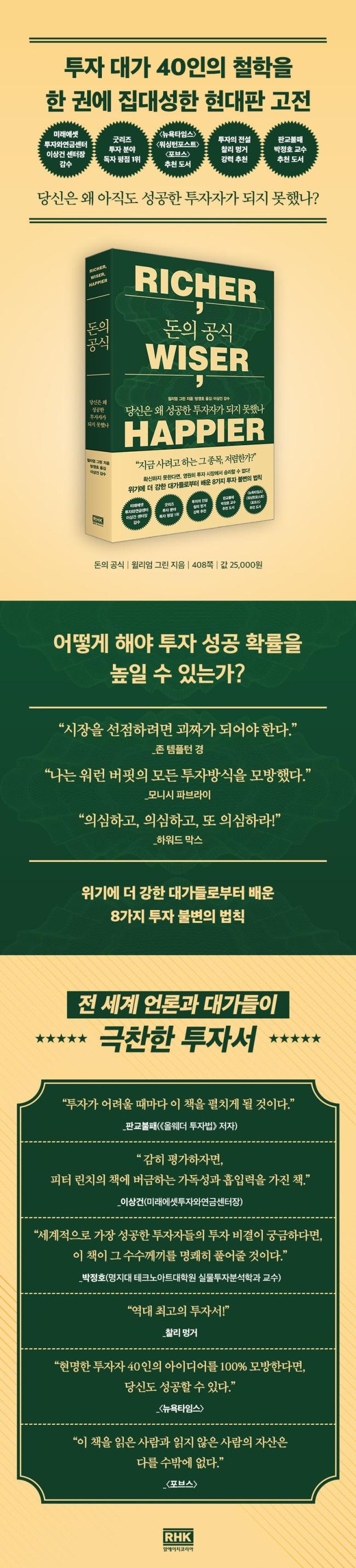 ¡´´º¿åŸÀÓ½º¡µ, ¡´Æ÷ºê½º¡µ, ¡´¿ö½ÌÅÏÆ÷½ºÆ®¡µ µî¿¡¼ ºÎ¿Í ¼º°ú¿¡ ´ëÇÑ ±ÛÀ» ±â°íÇÏ´Â ¹Ì±¹ÀÇ Àú³Î¸®½ºÆ® Àª¸®¾ö ±×¸°Àº ÀÌ Ã¥¿¡¼ ¼¼°è ÃÖ°í ÅõÀÚÀÚ 40ÀÎÀ» µ¶Á¡ ÀÎÅͺäÇÏ¸ç ¹ß°ßÇÑ ±×µéÀÌ °¡Áø ºÎ¿Í ÀλýÀÇ Ã¶ÇÐÀ» ¾Æ³¦¾øÀÌ °ø°³ÇÑ´Ù. ÀúÀÚ´Â Á¸ ÅÛÇÃÅÏ °æ, ¿ö·± ¹öÇÍ, Âû¸® ¸Û°Å, ÇÏ¿öµå ¸·½º, Á¶¿¤ ±×¸°ºí¶óÆ® °°Àº ÅõÀÚÀÇ ´ë°¡µéÀÌ ºÎ¸¦ ³Ñ¾î Àü ¼¼°èÀûÀ¸·Î Á¸°æ¹Þ´Â ÇöÀÎÀÌ µÉ ¼ö ÀÖ¾ú´ø ÀÌÀ¯¸¦ ´Ù°¢µµ·Î ºÐ¼®Çß´Ù. ¹Ýµå½Ã À̱â´Â ÅõÀÚ¿¡¸¸ ½ÂºÎ¸¦ °Å´Â ¾ÆÁÖ »ç¼ÒÇÑ ½À°üºÎÅÍ ÅõÀÚ ¿øÄ¢°ú ÀλýÀ» ´ëÇϴ ŵµ±îÁö, ¾ï¸¸ÀåÀÚ ÅõÀÚÀÚµéÀÇ ¸ðµç °ÍÀ» ¹Ù·Î ¿·¿¡¼ º¸°í ±â·ÏÇÑ ÀúÀÚ´Â, ±×µé³¢¸® °øÀ¯ÇÏ´ø ¡®ÅõÀÚ ºÒº¯ÀÇ ¹ýÄ¢¡¯À» 8°¡Áö·Î Á¤¸®ÇØ ¼Ò°³ÇÑ´Ù.