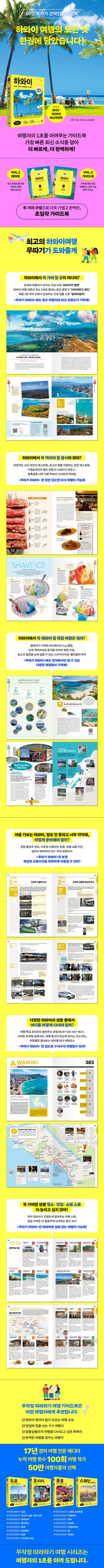 ÇÏ¿ÍÀÌ¿¡¼ ½Ê¿© ³â°£ °ÅÁÖÇÑ ÀÛ°¡°¡ ¼öÁýÇÑ ¹æ´ëÇÑ ¿©Çà Á¤º¸¸¦ ¸ðµÎ ´ãÀº ÃÖÃÊÀÇ ÇÏ¿ÍÀÌ ¿©Çà ¹é°ú»çÀüÀ¸·Î ÇÏ¿ÍÀ̸¦ óÀ½°¡´Â ¿©ÇàÀÚµµ ¿Ïº®ÇÑ ¿©ÇàÀ» Áñ±æ ¼ö ÀÖµµ·Ï µµ¿ÍÁÝ´Ï´Ù. ƯÈ÷ ÇÏ¿ÍÀÌ¿¡¼ ³õÄ¡Áö ¸»¾Æ¾ß ÇÒ Áß¿äÇÑ Àü¸Á ¸í¼Ò, ±íÀÌ ÀÖ´Â ¿©ÇàÀÌ µÇµµ·Ï µµ¿ÍÁÖ´Â ¿ª»ç ¸í¼Ò, ±×¸² °°Àº Àý°æÀ» °¨»óÇÒ ¼ö ÀÖ´Â Àϸô&ÀÏÃâ ¸í¼Ò, ÈÞ¾ç°ú ¾×ƼºñƼ µî ¿øÇÏ´Â ÃëÇâ´ë·Î °ñ¶ó¼ Áñ±æ ¼ö ÀÖ´Â ÇØº¯ ¸í¼Ò, ÇÏ¿ÍÀÌ µ¿¼³²ºÏ ¶¥ ³¡À» ¿©ÇàÇÏ´Â Áöµµ ³¡ ¸í¼Ò µî ²À ¹æ¹®ÇؾßÇÏ´Â Çʼö ¿©Çà Àå¼Ò¿Í ÀÛ°¡°¡ óÀ½À¸·Î ¼Ò°³ÇÏ´Â ¼û°ÜÁø ¾ÆÁöÆ® ¿©ÇàÁöµéÀ» ¼Ò°³ÇÕ´Ï´Ù.