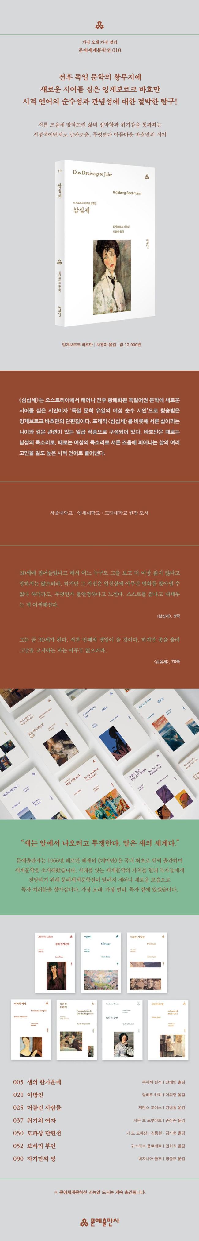 ¡¶»ï½Ê¼¼¡·´Â ¿À½ºÆ®¸®¾Æ¿¡¼ ž ÀüÈÄ È²ÆóÈµÈ µ¶ÀϾî±Ç ¹®Çп¡ »õ·Î¿î ½Ã¾î¸¦ ½ÉÀº ½ÃÀÎÀÌÀÚ ¡®µ¶ÀÏ ¹®ÇÐ À¯ÀÏÀÇ ¿©¼º ¼ø¼ö ½ÃÀΡ¯À¸·Î Ī¼Û¹ÞÀº À×°Ôº¸¸£Å© ¹ÙÈ常ÀÇ ´ÜÆíÁýÀÌ´Ù. Ç¥Á¦ÀÛ ¡´»ï½Ê¼¼¡µ¸¦ ºñ·ÔÇØ ¼¸¥ »ìÀ̶ó´Â ³ªÀÌ¿Í ±íÀº °ü·ÃÀÌ ÀÖ´Â Àϰö ÀÛǰÀ¸·Î ±¸¼ºµÇ¾î ÀÖ´Ù. ¹ÙÈ常Àº ¶§·Î´Â ³²¼ºÀÇ ¸ñ¼Ò¸®·Î, ¶§·Î´Â ¿©¼ºÀÇ ¸ñ¼Ò¸®·Î ¼¸¥ ÁîÀ½¿¡ ÇǾ´Â »îÀÇ ¿©·¯ °í¹ÎÀ» ¹Ðµµ ³ôÀº ½ÃÀû ¾ð¾î·Î Ç®¾î³½´Ù.
