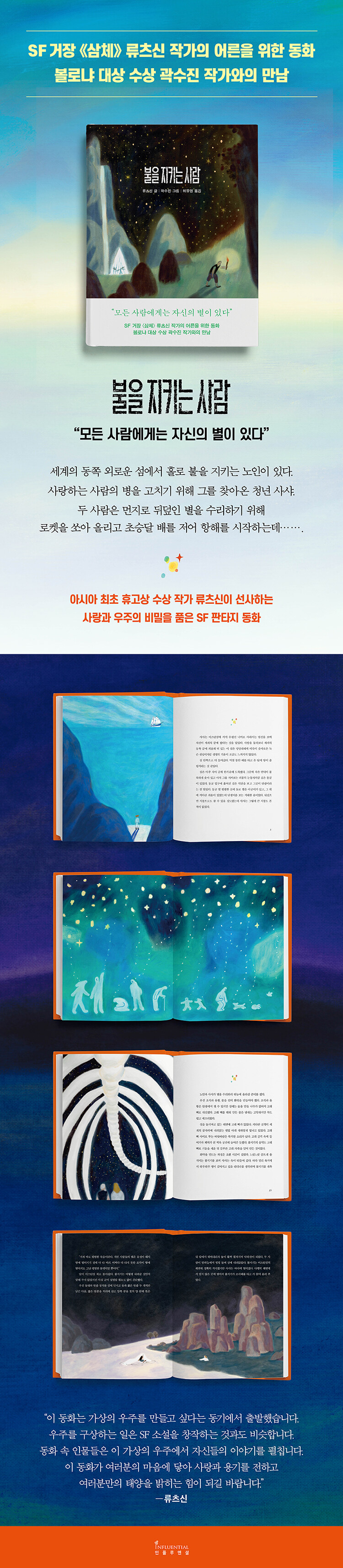 ¾Æ½Ã¾Æ ÃÖÃÊ·Î ÈÞ°í»óÀ» ¼ö»óÇÑ ¼¼°èÀû SF °ÅÀå ·ùÃ÷½ÅÀÌ ¾î¸¥À» À§ÇÑ µ¿È¸¦ ¼±º¸ÀδÙ. ¡¶»ïü¡·ÀÇ ÀÛ°¡ ·ùÃ÷½ÅÀÌ Ã³À½ÀÌÀÚ À¯ÀÏÇÏ°Ô ¾´ µ¿È ÀÛǰ ¡¶ºÒÀ» ÁöŰ´Â »ç¶÷¡·Àº ¼¼»óÀÇ ³¡¿¡¼ ¸ÅÀÏ Å¾翡 ºÒÀ» ÁöÇÇ´Â ºÒÁö±â ³ëÀÎ, ±×¸®°í »ç¶ûÇÏ´Â À̸¦ À§ÇØ ¸ðÇèÀ» ¶°³ª´Â û³âÀÇ ¾Æ¸§´ä°í ³¶¸¸ÀûÀÎ À̾߱⸦ ´ã¾Ò´Ù.