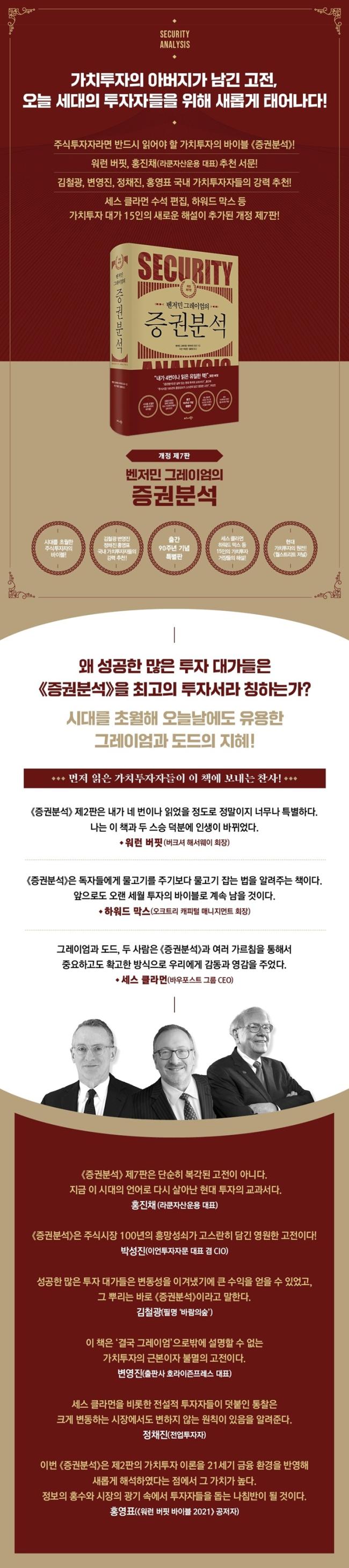 ¿ö·± ¹öÇÍÀº ¡¶Áõ±ÇºÐ¼®¡·À» µÎ°í ¡°³» ÀλýÀ» ¹Ù²Û Ã¥¡±ÀÌ¶ó ¸»Çϸç, öÀúÇÑ ºÐ¼®À» ÅëÇØ ¿ø±ÝÀÇ ¾ÈÀü°ú ¸¸Á·½º·¯¿î ¼öÀÍÀ» È®º¸ÇØ¾ß ÇÑ´Ù´Â ÅõÀÚ¿Í Åõ±âÀÇ ±¸ºÐÀ» Æò»ý öÇÐÀ¸·Î »ï¾Ò´Ù. ¼¼½º Ŭ¶ó¸ÕÀº ÀÌ Ã¥ÀÇ ÇÙ½ÉÀÎ ¡®¾ÈÀü¸¶Áø(Margin of Safety)¡¯ ¿øÄ¢À» ÀÚ½ÅÀÇ ÅõÀÚ Ã¶ÇÐ Á߽ɿ¡ µÎ¾ú°í, Àú¼ Á¦¸ñÀ» ¾Æ¿¹ ¡¶¾ÈÀü¸¶Áø¡·À̶ó ºÙ¿´´Ù. ÇÏ¿öµå ¸·½º´Â ³»Àç°¡Ä¡¿Í ½ÃÀå °¡°ÝÀÇ ±«¸®¿¡¼ ±âȸ°¡ ³ª¿Â´Ù°í º¸¸ç, ÀÌ´Â ¡¶Áõ±ÇºÐ¼®¡·ÀÌ ÀÏÂïÀÌ °Á¶ÇÑ ½ÃÀåÀÇ ºñÈ¿À²¼º¿¡ ´ëÇÑ ÅëÂû°ú ´ê¾Æ ÀÖ´Ù. ¡®ÀþÀº ¹öÇÍ¡¯À̶ó ºÒ¸®´Â ¹öÅ©¼Å ÇØ¼¿þÀÌÀÇ Åäµå ÄÞ½º ¿ª½Ã ¿©·¯ Â÷·Ê ޵¶Çϸç ÅõÀÚ Åµµ¿Í ºÐ¼® ÈÆ·ÃÀÇ ±³°ú¼·Î »ï¾Ò´Ù. ÀÌó·³ ´ë°¡µéÀÌ °øÅëÀ¸·Î ²Å´Â ÀåÁ¡Àº ¡¶Áõ±ÇºÐ¼®¡·ÀÌ ´Ü¼øÇÑ ±â¹ý¼°¡ ¾Æ´Ï¶ó, ÅõÀÚÀÚÀÇ »ç°í¹æ½Ä°ú ŵµ¸¦ ±Ùº»ÀûÀ¸·Î ¹Ù²ãÁִ åÀ̶ó´Â Á¡ÀÌ´Ù.