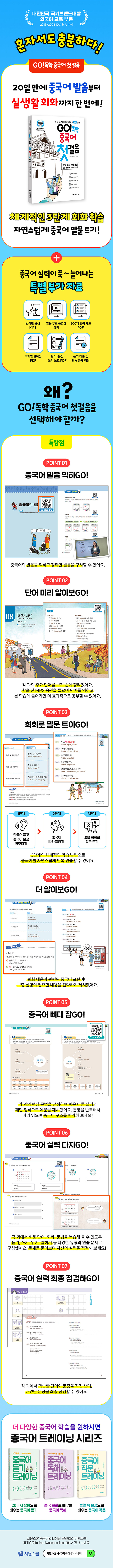 ¹ßÀ½ºÎÅÍ ½Ç»ýȰ ȸȱîÁö Áß±¹¾î¸¦ óÀ½ ½ÃÀÛÇÏ´Â ´©±¸³ª ü°èÀûÀ¸·Î ½±°í Àç¹ÌÀÖ°Ô ÇнÀÇÒ ¼ö ÀÖµµ·Ï ±¸¼ºÇÑ ±³Àç´Ù. Àϻ󿡼 °¡Àå ¸¹ÀÌ ¾²ÀÌ´Â 20°¡Áö ÁÖÁ¦¸¦ ¼±Á¤ÇÏ¿© Áß±¹¾î ¸»¹®ÀÌ ÀÚ¿¬½º·´°Ô Æ®À̵µ·Ï ¸»Çϱâ Áß½ÉÀ¸·Î ±¸¼ºÇÏ¿´´Ù. ƯÈ÷ ȸÈÀÇ °æ¿ì 1´Ü°è: Çѱ¹¾î µè°í Áß±¹¾î ¹®Àå À¯ÃßÇϱ⠡æ 2´Ü°è: Áß±¹¾î µû¶óÇϱ⠡æ 3´Ü°è: »óȲ ȸȷΠ¸»¹® Æ®±â, ÃÑ 3´Ü°èÀÇ Ã¼°èÀûÀÎ ÇнÀ ¹æ¹ýÀ¸·Î Áß±¹¾î¸¦ ¹Ýº¹ ¿¬½ÀÇÒ ¼ö ÀÖ´Ù. ¶ÇÇÑ °¢ °úÀÇ ÇÙ½É ¹®¹ýÀ» ½¬¿î ÀÌ·Ð ¼³¸í°ú ÇÔ²² ÆÐÅÏ Çü½ÄÀ¸·Î ¿¹¹®À» Á¦½ÃÇÏ¿© ÀÚ¿¬½º·´°Ô Áß±¹¾îÀÇ ¹®Àå ±¸Á¶¸¦ ÆÄ¾ÇÇØ º¼ ¼ö ÀÖ´Ù.