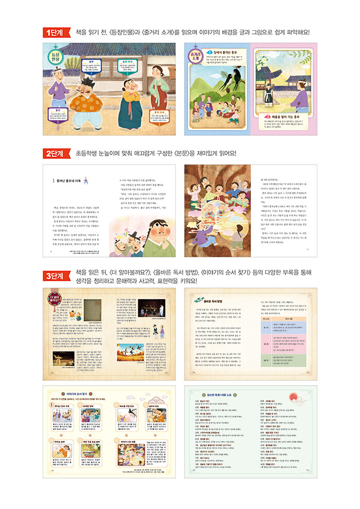 º»¹® µÚ¿¡´Â <ÀÛ°¡¿Í ÀÛǰ À̾߱â>, <´õ ¾Ë¾Æº¼±î¿ä?>¸¦ ÅëÇØ ¡¶ÈïºÎÀü¡·ÀÇ ¹è°æ°ú Àǹ̸¦ ±íÀÌ ÀÖ°Ô »ìÆìº¼ ¼ö ÀÖ°í, <¿Ã¹Ù¸¥ µ¶¼ ¹æ¹ý>, <À̾߱âÀÇ ¼ø¼ ã±â>, <±â¾ï·Â ¾¦¾¦! µ¶¼ ÄûÁî>, <ÀÐÀ¸¸é ½ï½ï! ¾îÈÖ ³ëÆ®>, <ÀÐ°í ¾²´Â ¿ì¸®ÀÇ µ¶¼ Àϱâ>, <ÃÖ°íÀÇ Àå¸é, º£½ºÆ® 3> µîÀÌ ¸¶·ÃµÇ¾î ÀÖ¾î Èï¹Ì·Ó°Ô µ¶ÈÄ È°µ¿À» ÀÌ¾î °¥ ¼ö ÀÖ½À´Ï´Ù. ÀÌ °úÁ¤À» ÅëÇØ ¾ÆÀ̵éÀº ÀÚ¿¬½º·´°Ô ¹®Çط°ú »ç°í·Â, Ç¥Çö·ÂÀ» ±â¸¦ »Ó ¾Æ´Ï¶ó ÀڽŸ¸ÀÇ »ý°¢À» Á¤¸®Çϰí Ç¥ÇöÇÏ´Â ÈûÀ» Ű¿ö ³ª°¥ °ÍÀÔ´Ï´Ù.