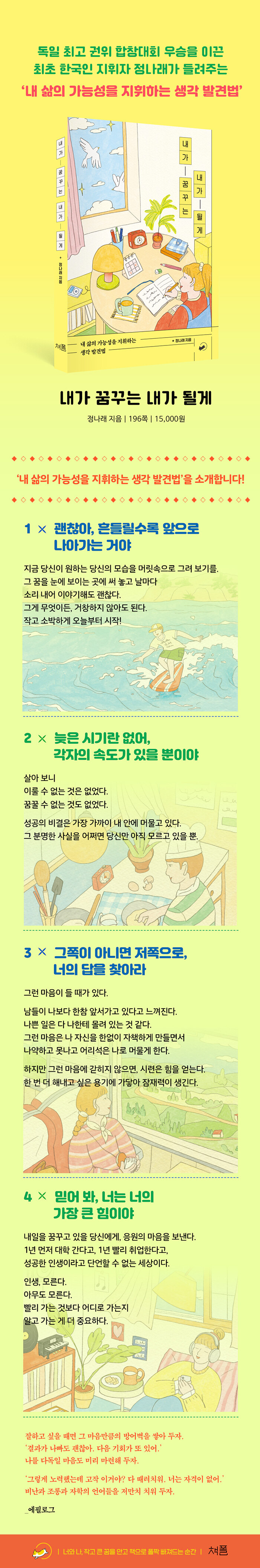 ¡º³»°¡ ²Þ²Ù´Â ³»°¡ µÉ°Ô¡»´Â ºÒÈ®½ÇÇÑ ¹Ì·¡ ¾Õ¿¡¼ ÁÖÀúÇϴ û¼Ò³â°ú û³â, Èçµé¸®¸é¼µµ ´Ù½Ã ÀϾ°í ½ÍÀº ¸ðµç ÀÌ¿¡°Ô ÀüÇÏ´Â ±àÁ¤°ú ¿ë±âÀÇ ±â·ÏÀÌ´Ù. ÀúÀÚ Á¤³ª·¡´Â ÇÐâ ½ÃÀý ¡°³×°¡ ¹«½¼ Àμ¿ï?¡± ¡°²Þµµ Âü Å©´Ù.¡±¶ó¸ç ºñ¿ôÀ½À» ¹Þ¾Ò°í, ´ëÇÐ Á¹¾÷ ÈÄ À¯ÇÐÀÇ ²ÞÀ» ²Ù¾úÀ» ¶© ¡°ÇüÆíµµ ¾î·Á¿îµ¥ µ¶ÀÏ À¯ÇÐÀ̶ó´Ï.¡± ¡°Çö½Ç¿¡ ¸¸Á·ÇØ.¡±¶ó¸ç ¹ø¹øÀÌ ¹Ý´ë¿¡ ºÎµúÈ÷°ï Çß´Ù. ÇÏÁö¸¸ ÀúÀÚ´Â ²ÞÀ» Æ÷±âÇÏÁö ¾Ê¾Ò°í, ¸¶Ä§³» K-Ŭ·¡½ÄÀ» À̲ô´Â ÇÕâ´Ü ÁöÈÖÀڷΠȰ¾àÇϸç À¯·´ Àü¿ª¿¡¼ ÁÖ¸ñ¹Þ´Â ¹«´ë¿¡ ¼°Ô µÈ´Ù.