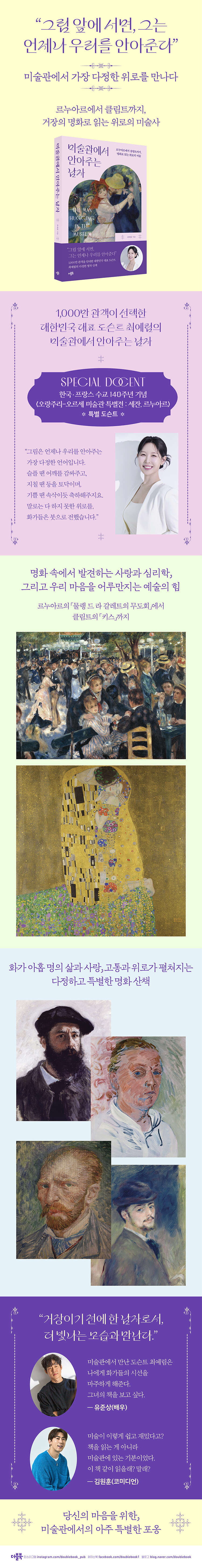 ¡º¹Ì¼ú°ü¿¡¼ ¾È¾ÆÁÖ´Â ³²ÀÚ¡»´Â ´Ü¼øÈ÷ ¸íȸ¦ ÇØ¼³Çϴ åÀÌ ¾Æ´Ï´Ù. Ȱ¡ÀÇ »î°ú ÀÛǰ, ±×¸®°í ±×°ÍÀ» ¹Ù¶óº¸´Â µ¶ÀÚÀÇ ¸¶À½ÀÌ ¼·Î ¸¸³ª ÀÌ·ç¾î³»´Â ´ëȸ¦ ±â·ÏÇÑ Ã¥ÀÌ´Ù. ÀúÀÚ´Â ¡°½½Çà ¶§´Â À§·Î°¡ µÇ°í, ±â»Ü ¶§´Â °ø°¨ÀÌ µÇ°í, ÁöÄ¥ ¶§´Â ÈûÀÌ µË´Ï´Ù. °°Àº ÀÛǰÀÌ¶óµµ º¸´Â »ç¶÷¿¡ µû¶ó ÀüÇô ´Ù¸¥ ¸Þ½ÃÁö¸¦ ÀüÇØÁÖ´Â °Í, ±×°ÍÀ̾߸»·Î ¿¹¼úÀÇ ÁøÂ¥ ¸Å·ÂÀÌ¿¡¿ä¡±¶ó°í ¸»ÇÑ´Ù.