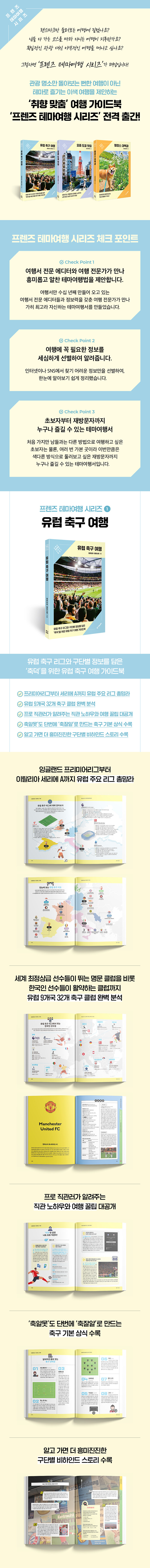 ¹ãÀá ÁÙ¿©°¡¸ç À¯·´ Ã౸ °æ±â¸¦ º¸±â À§ÇØ »õº® ½Ã°£ TV ¾Õ¿¡¼ ¹ãÀ» Áö»õ¿î ¡®Ãà´ö¡¯À̶ó¸é ´©±¸³ª ²Þ²Ù´Â ¡®Á÷°ü¡¯. ÀÌ Ã¥Àº »ý»ýÇÑ À¯·´ Ã౸ °æ±â¸¦ ´«¾Õ¿¡¼ °üÀüÇÏ°í ½ÍÀº ¡®Ãà´ö¡¯À» À§ÇÑ À¯·´ Ã౸ ¿©Çà °¡À̵åºÏÀÌ´Ù. Ã౸ Á¾ÁÖ±¹ À×±Û·£µå ÇÁ¸®¹Ì¾î¸®±×ºÎÅÍ ÀÌÅ»¸®¾Æ ¼¼¸®¿¡ A±îÁö À¯·´À» ´ëÇ¥ÇÏ´Â Ã౸ ¸®±×¸¦ ºñ·ÔÇØ À¯·´ 9°³±¹ 32°³ÀÇ Ã౸ Ŭ·´¿¡ ´ëÇÑ ¸ðµç °ÍÀ» »ô»ôÀÌ ÆÄÇìÃÆ´Ù. Ã౸ Á÷°üÀÇ Ã¹ ´Ü°èÀÎ ¡®Æ¼ÄÏ ¿¹¸Å¡¯ºÎÅÍ ¡®Á¼® ¼±Åà ³ëÇϿ졯, ¡®Ãßõ ¼÷¹Ú Áö¿ª¡¯±îÁö Á÷°ü Ãʺ¸ÀÚµµ ´Ü¹ø¿¡ ¼º°øÇÒ ¼ö ÀÖ´Â ³ëÇÏ¿ì¿Í ²ÜÆÁÀ» °¡µæ ´ã¾Ò´Ù. ÀÚ, ÀÌÁ¦ TV ¾ÕÀ» ¹þ¾î³ª ¶ß°Å¿î ¿±â°¡ °¡µæÇÑ °æ±âÀåÀ¸·Î ¶°³ªº¸ÀÚ!