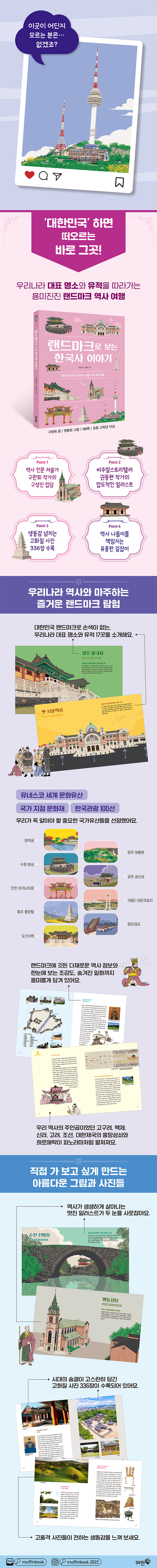 ÀÌ Ã¥¿¡ ¼ö·ÏµÈ ·£µå¸¶Å© 17°÷Àº ¡®À¯³×½ºÄÚ ¼¼°è ¹®ÈÀ¯»ê¡¯, ¡®±¹°¡ ÁöÁ¤ ¹®ÈÀ硯, ¡®Çѱ¹°ü±¤ 100¼±¡¯¿¡ À̸§À» ¿Ã¸° Áß¿äÇÑ °ÇÃ๰ÀÌ¿¡¿ä. ¿ì¸®ÀÇ À¯±¸ÇÑ ¿ª»ç ¼Ó¿¡¼ ºüÁöÁö ¾Ê°í µîÀåÇÏ´Â, ²À ±â¾ïÇØ¾ß ÇÒ Áß¿äÇÑ ±¹°¡À¯»êÀÌÁö¿ä. ÀÌ·¸°Ô ¹®ÈÀç·Î¼ÀÇ °¡Ä¡»Ó ¾Æ´Ï¶ó, ³î¶ó¿î °úÇÐ ±â¼ú°ú ¿¹¼ú¼º±îÁö ¿³º¼ ¼ö ÀÖ´Â ·£µå¸¶Å©µéÀº 336ÀåÀÇ »ýµ¿°¨ ³ÑÄ¡´Â »çÁøÀ¸·Î °¨»óÇÒ ¼ö ÀÖ¾î¿ä. ·£µå¸¶Å©ÀÇ ¾ÈÆÆÀÇ Æ¯Â¡°ú ¾Æ¸§´Ù¿òÀ» °£Á¢ üÇèÇÒ ¼ö ÀÖ´Â »çÁøµéÀÌ Ç³¼ºÇÏ°Ô ¼ö·ÏµÇ¾î ÀÖ¾î ·£µå¸¶Å©¿¡ ´ëÇÑ ÀÔüÀû ÀÌÇØ¸¦ µ½½À´Ï´Ù. ¶ÇÇÑ ·£µå¸¶Å©°¡ ÀÖ´Â ÇØ´ç Áö¿ª¿¡¼ ÇÔ²² ¹æ¹®Çϸé ÁÁÀ» ¶Ç ´Ù¸¥ ·£µå¸¶Å©µéµµ ÇÔ²² ¼Ò°³ÇÏ¿© ¿ª»ç ³ªµéÀ̸¦ °èȹÇÏ´Â µ¶ÀÚµéÀÌ µÎ°íµÎ°í º¼ ¼ö ÀÖ´Â À¯¿ëÇÑ ±æÀâÀ̰¡ µÇ¾î ÁÙ °Å¿¹¿ä.