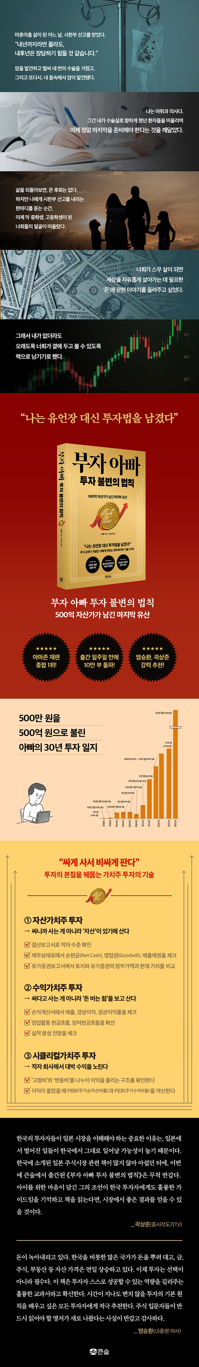 ¸¶Ãë°ú ÀÇ»çÀÌÀÚ ¼º°øÇÑ °³ÀÎ ÅõÀÚÀÚÀÎ ÀúÀÚ´Â ½ÃÇѺΠ¼±°í¸¦ ¹Þ°í, ÀÌ Ã¥À» ¾²±â·Î °á½ÉÇß´Ù. ¾ÆÁ÷ Áß°íµîÇлýÀÎ µþµéÀÌ ¾î¸¥ÀÌ µÇ¸é Á÷Á¢ ¾Ë·ÁÁÖ°í ½Í¾ú´ø ÅõÀÚ¿¡ °üÇÑ ÁöÇý¸¦, Ã¥À̶ó´Â ÇüÅ·Π³²°Ü ÀÚ½ÅÀÌ °ç¿¡ ¾ø¾îµµ ¿À·¡ µÎ°í º¸±â¸¦ ¹Ù¶ú±â ¶§¹®ÀÌ´Ù. ´Üµ· 500¸¸ ¿ø(¿øÈ ±âÁØ)À» 500¾ï ¿øÀ¸·Î ºÒ¸° ÇÑ »ç¶÷ÀÇ 30³â°£ÀÇ ÅõÀÚ ±â·ÏÀ» ´ãÀº ÀÌ Ã¥Àº, Ãâ°£ Áï½Ã ¡°¾Æ¸¶Á¸ ÀçÆÒ Á¾ÇÕ 1À§¡± ¡°Ãâ°£ ÀÏÁÖÀÏ ¸¸¿¡ 10¸¸ ºÎ ÆÇ¸Å¡± ¡°ÀúÀÚ Ã⿬ ¿µ»ó 100¸¸ ºä¡± µî °æÁ¦°æ¿µ¼·Î´Â ÀÌ·ÊÀûÀÎ ±â·ÏÀ» ¼ÓÃâÇϸç ÀϺ» Àü¿ª¿¡¼ ÈÁ¦¸¦ ºÒ·¯ ¸ð¾Ò´Ù.