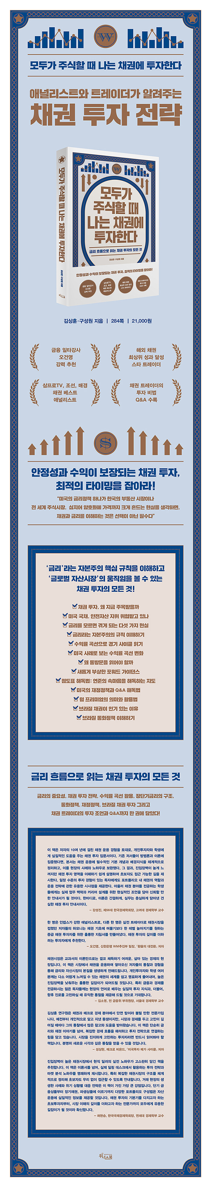 ¡º¸ðµÎ°¡ ÁÖ½ÄÇÒ ¶§ ³ª´Â ä±Ç¿¡ ÅõÀÚÇÑ´Ù¡»´Â ä±Ç º£½ºÆ® ¾Ö³Î¸®½ºÆ® ±è»óÈÆ°ú ÇØ¿Ü ä±Ç½ÃÀå¿¡¼ ÃÖ»óÀ§ ¼º°ú¸¦ ³½ Æ®·¹ÀÌ´õ ±¸¼º¿øÀÌ ¡®±Ý¸® È帧À¸·Î Àд ä±Ç ÅõÀÚ¡¯¸¦ ¿Ïº®È÷ Á¤¸®ÇÑ Ã¥ÀÌ´Ù. ±Ý¸®ÀÇ ±¸Á¶ºÎÅÍ Ã¤±Ç ÅõÀÚ Àü·«, ¼öÀÍ·ü °î¼± Ȱ¿ë, Àå´Ü±â±Ý¸®ÀÇ ±¸Á¶, ÅëÈÁ¤Ã¥, ÀçÁ¤Á¤Ã¥, ±×¸®°í ºê¶óÁú ä±Ç ÅõÀÚ±îÁö ´Ù·ç¸ç ä±ÇÀ» ÅëÇØ ±Ý¸®¶ó´Â ÀÚº»ÁÖÀÇÀÇ ÇÙ½É ±ÔÄ¢À» ÀÌÇØÇÒ ¼ö ÀÖµµ·Ï µ½´Â´Ù. ¶ÇÇÑ Ã¥¿¡´Â ä±Ç Æ®·¹ÀÌ´õÀÇ ÅõÀÚ Á¶¾ð°ú Q&A ½º¹« °³°¡ ¼ö·ÏµÇ¾î ÀÖ¾î, ÅõÀÚÀÚµéÀÌ ½ÇÀü¿¡¼ °¡Àå ±Ã±ÝÇØÇÏ´Â Áú¹®¿¡ ´ëÇÑ ±¸Ã¼ÀûÀÎ ÇØ´äÀ» ¾òÀ» ¼ö ÀÖ´Ù. ÀÌ Ã¥Àº ´Ü¼øÇÑ Ã¤±Ç ÀÔ¹®¼¸¦ ³Ñ¾î, ÅõÀÚÀÚ°¡ ±Û·Î¹ú ÀÚ»ê½ÃÀåÀÇ ¹æÇâÀ» ¿¹ÃøÇÒ ¼ö ÀÖµµ·Ï ÅëÂûÀ» Á¦½ÃÇÏ´Â ½ÇÀü ¾È³»¼ÀÌ´Ù.