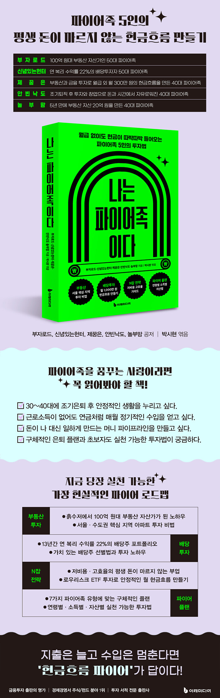 CHAPTER 1¿¡¼´Â 50´ë¿¡ ¾à 100¾ï ¿øÀÇ ºÎµ¿»ê ÀÚ»êÀ» °¡Áø ¡®ºÎÀڷε塯 ÁöÀºÀÌÀÇ ÅõÀÚ¹ýÀ» ¼Ò°³ÇÑ´Ù. ±×´Â ÇöÀç ¼öµµ±Ç¿¡ Àϰö äÀÇ ¾ÆÆÄÆ®¸¦ º¸À¯ ÁßÀÌ¸ç ºñ±³Àû ÀûÀº µ·À¸·Î ÅõÀÚÇÒ ¼ö ÀÖ´Â ¼öµµ±Ç ÇÙ½É Áö¿ª°ú ±× ¹æ¹ýÀ» ¾Ë·ÁÁØ´Ù. CHAPTER 2¿¡¼´Â 13³â µ¿¾È ¿¬ º¹¸® ¼öÀÍ·ü ¾à 22%¸¦ ±â·Ï ÁßÀÎ ¡®½Å³äÀÖ´ÂÇåÅÍ¡¯ ÁöÀºÀÌÀÇ ¹è´çÅõÀÚ ºñ¹ýÀ» ¼Ò°³ÇÑ´Ù. º»ÀÎÀÌ 13³â µ¿¾È ÅõÀÚÇÑ Á¾¸ñ°ú ¹è´çÁÖ °í¸£´Â ¹æ¹ý, ±×¸®°í º»Àθ¸ÀÇ ¹è´çÅõÀÚ ³ëÇϿ츦 °ø°³ÇÑ´Ù. CHAPTER 3¿¡¼´Â ÃʵîÇб³ ±³»çÀÌÀÚ 40´ë¿¡ ÆÄÀ̾îÁ·ÀÇ ²ÞÀ» ÀÌ·é ¡®Á¦²ÞÀº¡¯ ÁöÀºÀ̰¡ ÆÄÀ̾îÁ·ÀÌ µÇ±â À§ÇÑ Á¶±âÀºÅð Ç÷£À» ¼Ò°³ÇÑ´Ù. ÆÄÀ̾îÁ· À¯ÇüÀ» ÃÑ 7°¡Áö·Î ³ª´©¾î ¸ñÇ¥·Î ÇÏ´Â À¯Çü¿¡ ¸Â´Â ¿¬·Éº°, ¼Òµæº°, Àڻ꺰 ½Çõ ¹æ¹ýÀ» ¾Ë·ÁÁØ´Ù. CHAPTER 4¿¡¼´Â 27¼¼¿¡ ¼Ò¹æ°üÀÌ µÇ¾î 20³â µ¿¾È ±Ù¹« ÈÄ Á¶±âÅðÁ÷ÇÑ ¡®¾Èºó³«µµ¡¯ ÁöÀºÀÌÀÇ ÅõÀÚ¹ýÀ» ¼Ò°³ÇÑ´Ù. ÅðÁ÷ Àü¿¡´Â ºÎµ¿»ê ÅõÀÚ¸¦, ÅðÁ÷ ÈÄ¿¡´Â â¾÷°ú ÁÖ½Ä ÅõÀÚ·Î ¸Å¿ù ¾ÈÁ¤ÀûÀÎ Çö±ÝÈ帧À» ¸¸µç º»Àθ¸ÀÇ ºñ¹ýÀ» °ø°³ÇÑ´Ù. ¸¶Áö¸· CHAPTER 5¿¡¼´Â 5³â ¸¸¿¡ ¾à 20¾ï ¿øÀÇ ºÎµ¿»ê ÀÚ»êÀ» ¸¸µé°í ÀºÅð ÈÄ °ø°£´ë¿© »ç¾÷°ú ETF ÅõÀÚ·Î ¿ù Çö±ÝÈ帧 ¾à 770¸¸ ¿øÀ» ¸¸µç ¡®³îºÎ¸¾¡¯ ÁöÀºÀÌÀÇ Çö½ÇÀûÀÎ ÅõÀÚ¹ýÀ» ¼Ò°³ÇÑ´Ù.