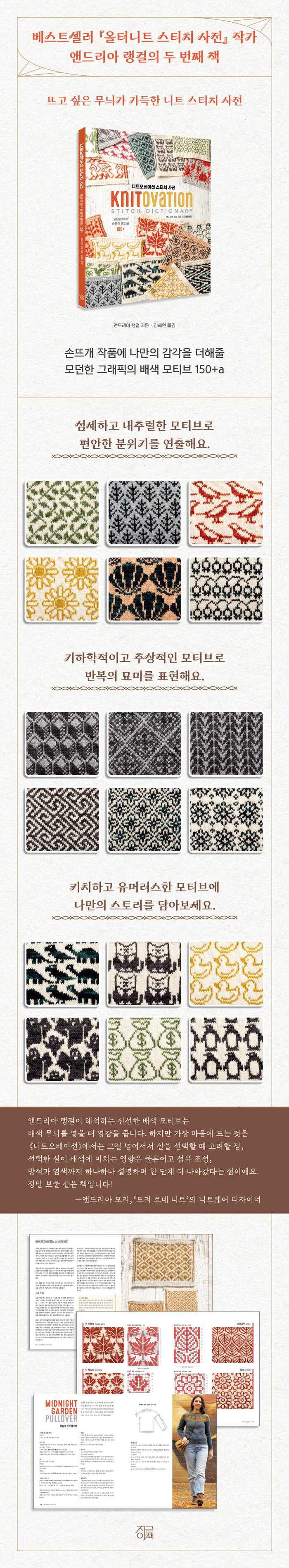 ù ´ÜºÎÅÍ ¸¶Áö¸· ´Ü±îÁö ÆÐÅÏÀÇ Áö½Ã»çÇ×À» µû¶ó ¶ß´Â µ¥ ¾î·Á¿òÀÌ ¾ø´Â ´ÏÅͶó¸é, ³ª¸¸ÀÇ µðÀÚÀÎÀ¸·Î âÀǼºÀ» Ç¥ÇöÇØº¸°í ½Í¾îÁö´Â ´Ü°è°¡ ¿Ã °ÍÀÌ´Ù. ÀÌ Ã¥ ¡º´ÏÆ®¿Àº£À̼ǡ»¿¡´Â °¡·Î ¹è»ö¶ß±â¸¦ ±âº»À¸·Î, ¾î¶² Æí¹°¿¡µç ¸¶À½²¯ ÀÀ¿ëÇÒ ¼ö ÀÖ´Â ¸ðƼºê 150¿© Á¾ÀÌ ¼ö·ÏµÇ¾î ÀÖ´Ù. ÀÌ ¸ðƼºê¸¦ ´Ü¼øÇÑ Æò¸éÀÇ ¼ñÀ̳ª ¸ñµµ¸®¿¡ ³Öµç, Á» ´õ º¹ÀâÇÑ ÀÇ·ù¿¡ ³Öµç, ¼¶¼¼ÇÏ°Ô Ç¥ÇöÇØ¾ß ÇÏ´Â Àå°©À̳ª ¾ç¸»¿¡ ³Öµç ¼±ÅÃÀº ÀÚÀ¯´Ù. óÀ½ºÎÅÍ ³¡±îÁö ¶È°°Àº ¸ðƼºê¸¦ °è¼Ó ¹Ýº¹Çϵç, µü ÇÑ ±ºµ¥ Æ÷ÀÎÆ®·Î ³Öµç ±× ¿ª½Ã ÀÚÀ¯´Ù.